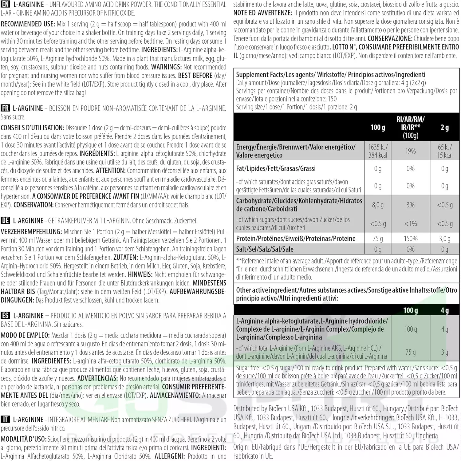 Описание BioTechUSA L-Arginine 3000 mg