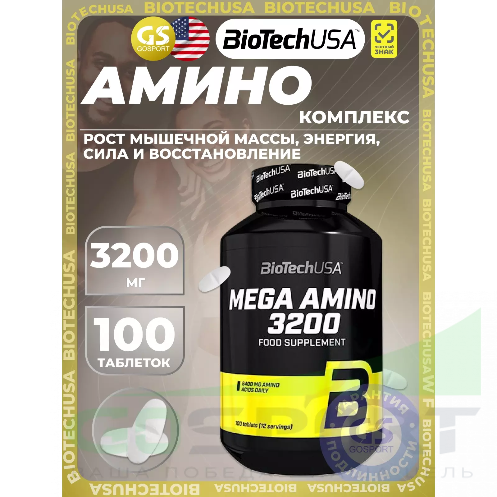 BioTechUSA Mega Amino 3200 100 таблеток — Рост мышечной массы, энергия, сила и восстановление