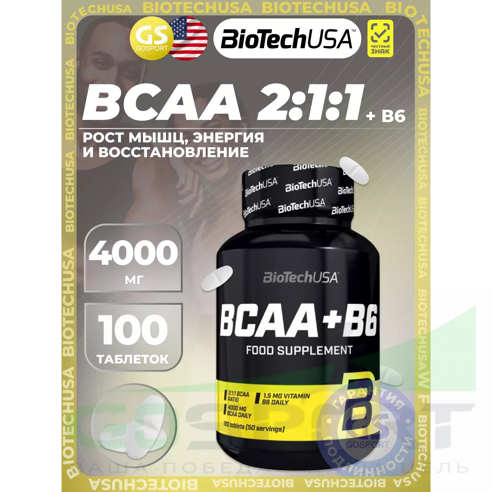 Как и все продукты BioTechUSA, BCAA+B6 изготовлен из безопасных для здоровья и тщательно отобранных ингредиентов.