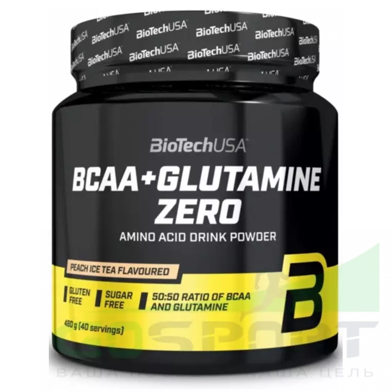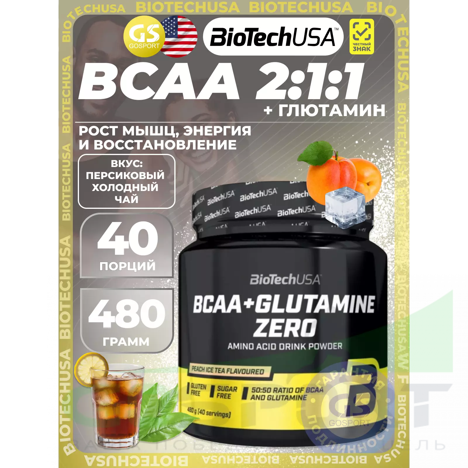 BioTechUSA BCAA + Glutamine Zero 480 г, Персиковый холодный чай — Рост мышц, энергия и восстановление