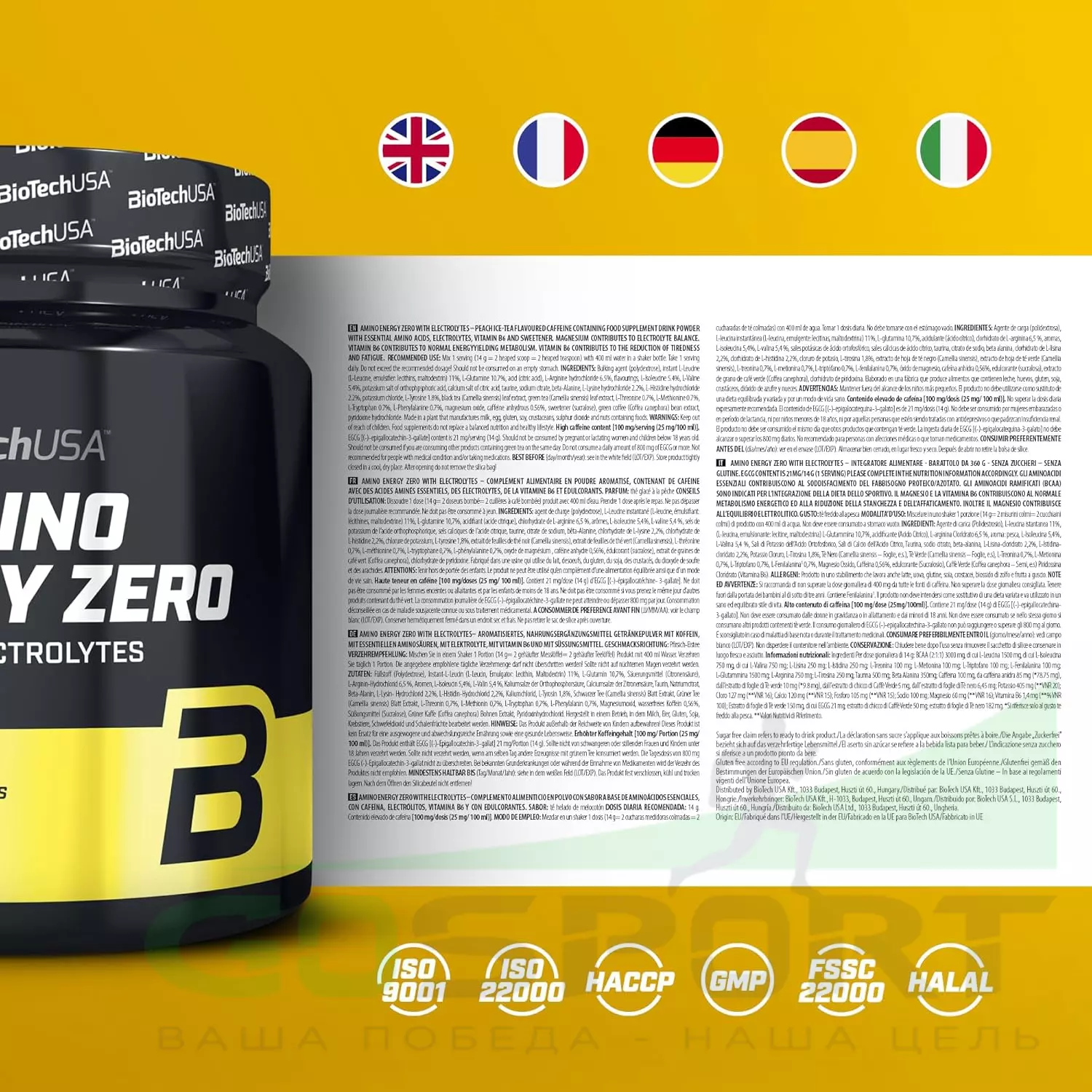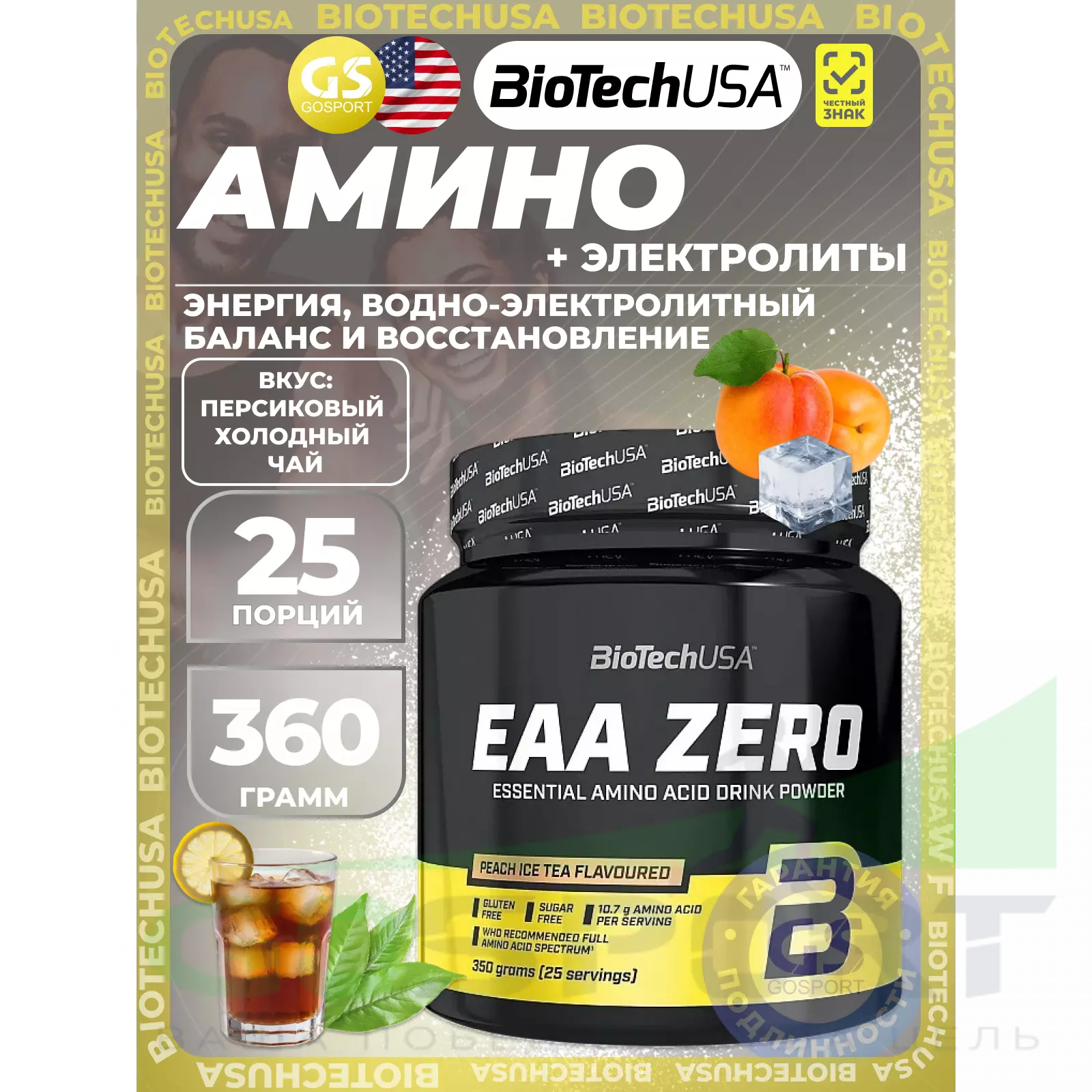 BioTechUSA Amino Energy Zero 360 г, Персиковый холодный чай — Энергия, водно-электролитный баланс и восстановление