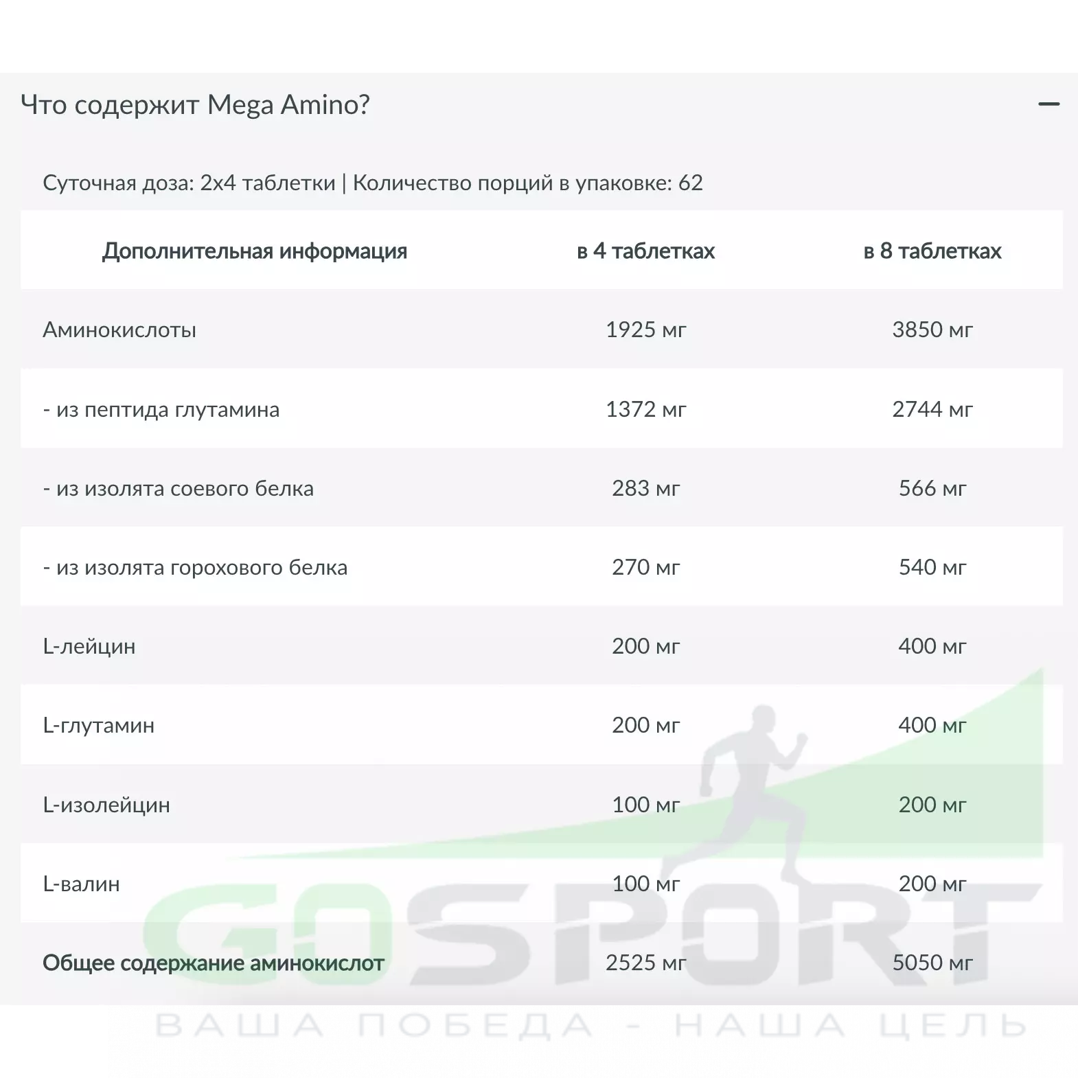 BioTechUSA Mega Amino 3200 500 таблеток — Рост мышечной массы, энергия, сила и восстановление