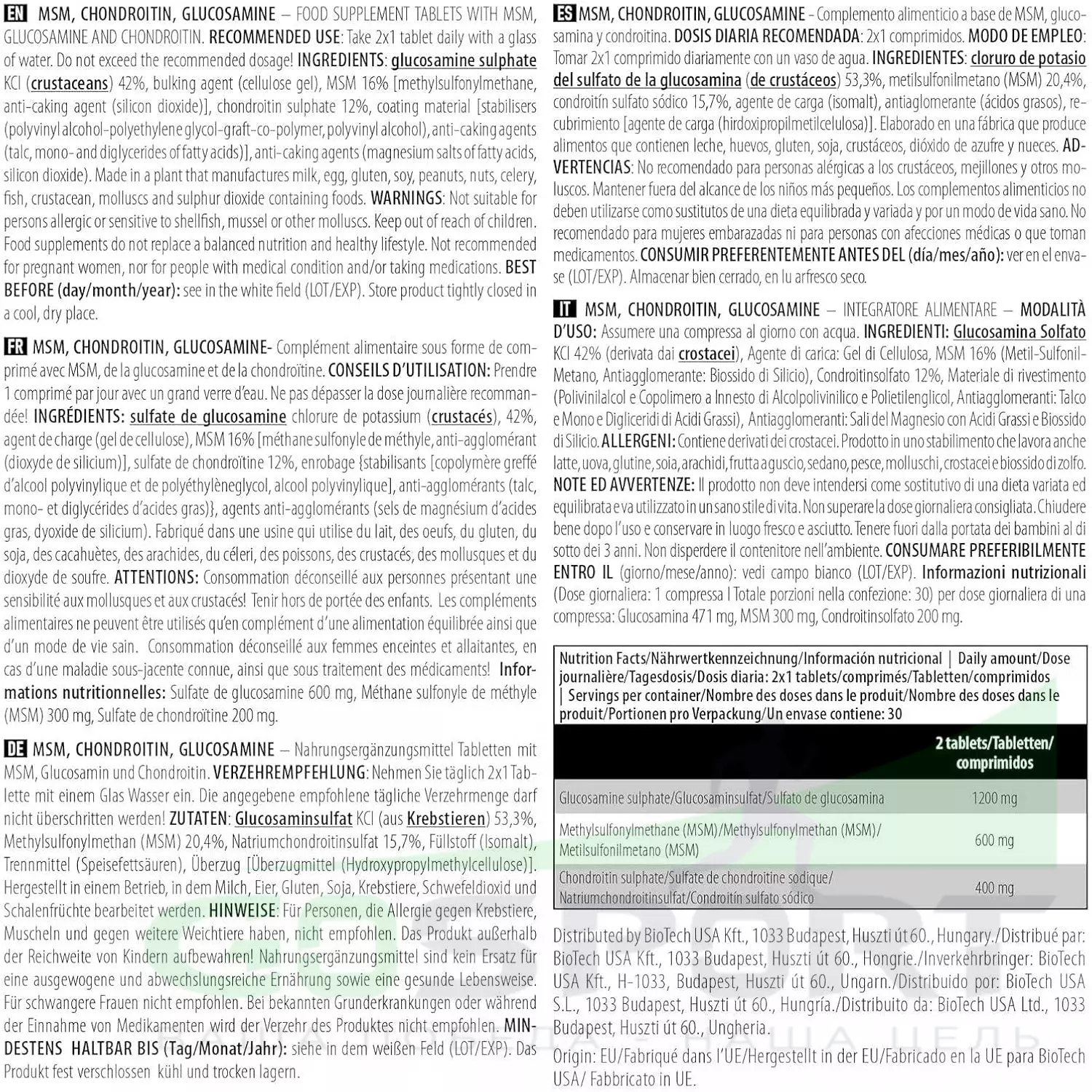 Описание BioTechUSA MSM Chondroitin Glucosamine