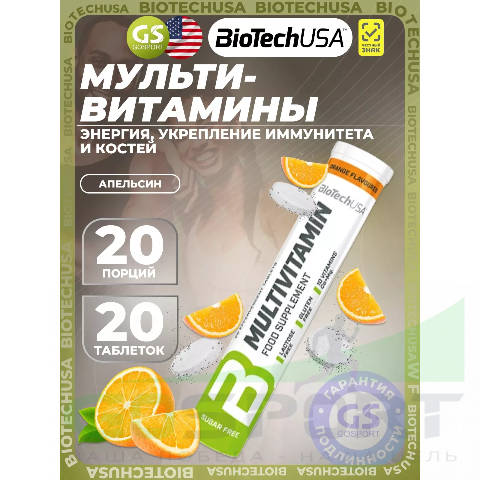 BioTechUSA Multivitamin 20 шипучих таблеток, Апельсин — Энергия, укрепление иммунитета и костей
