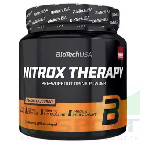 BioTechUSA Nitrox Therapy 340 г, Персик — Пампинг, энергия, концентрация, снижение усталости