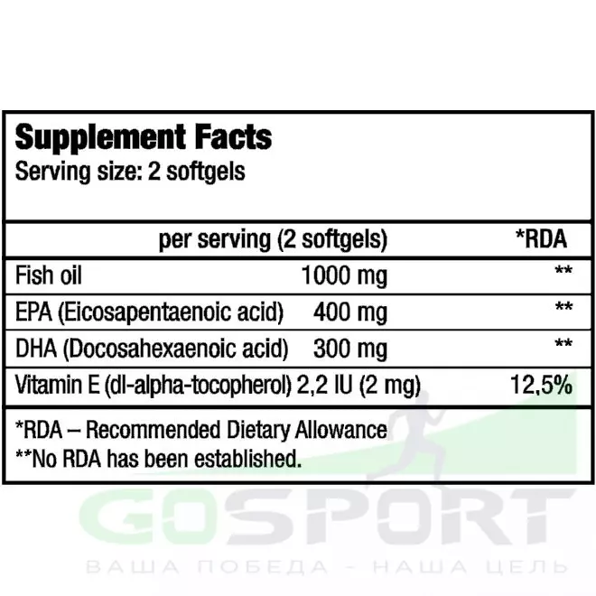 | Ингредиенты: рыбий жир (40% EPA, 30% DHA), оболочка (желатин, увлажнитель (глицерин), вода) антиоксидант (DL-альфа-токоферол). | |