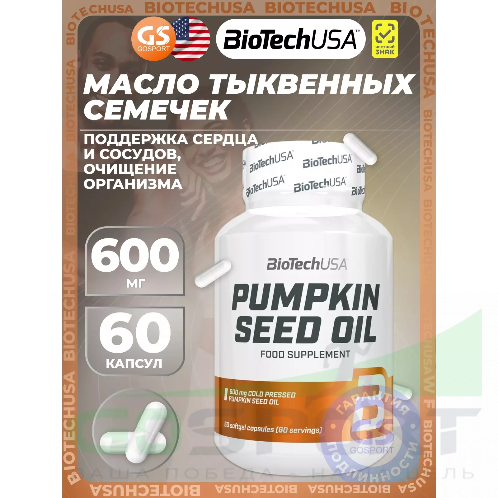 BioTechUSA Pumpkin Seed Oil 600 mg 60 гелевых капсул — Поддержка сердца и сосудов, очищение организма