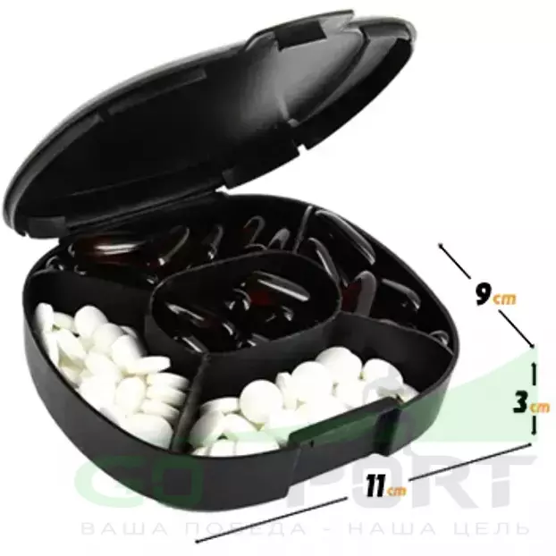 Удобная в использовании таблетница для ношения и хранения спортивных таблеток и капсул (аминокислот, bcaa, витаминов, фармакологии и других препаратов в таблетках). Таблетница BioTech разделена на пять частей. Кейс для таблеток BioTech USA действительно очень удобный спортивный аксессуар с помощью которого можно упорядочить ежедневные приемы спортивного питания.