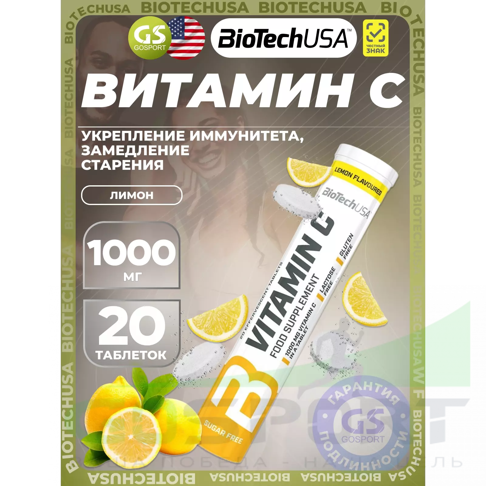 BioTechUSA Vitamin C 1000 mg 20 шипучих таблеток, Лимон — Укрепление иммунитета, замедление старения