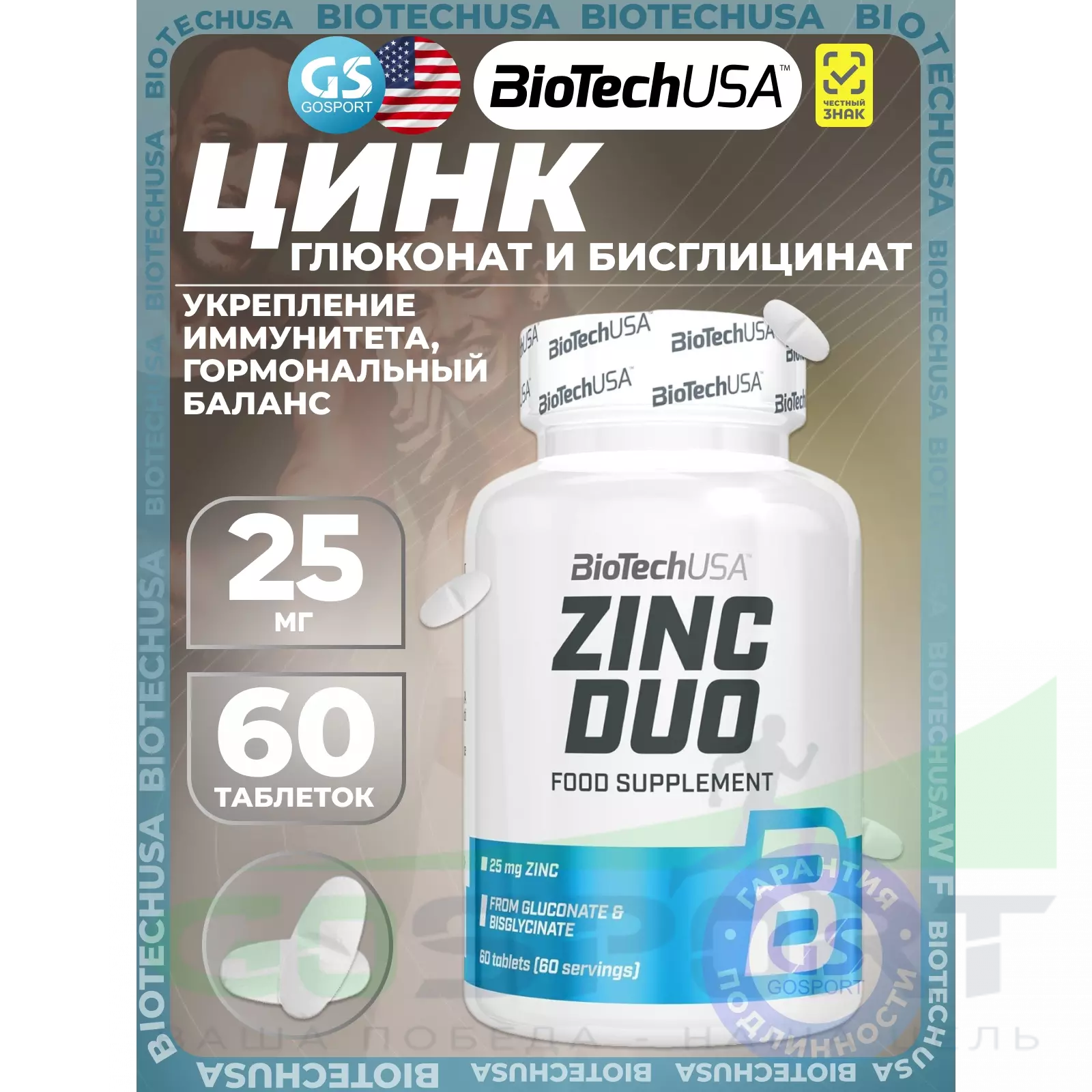 Zinc Duo содержит две органические формы цинка (глюконат и бисглицинат), которые отличаются высокой биодоступностью.