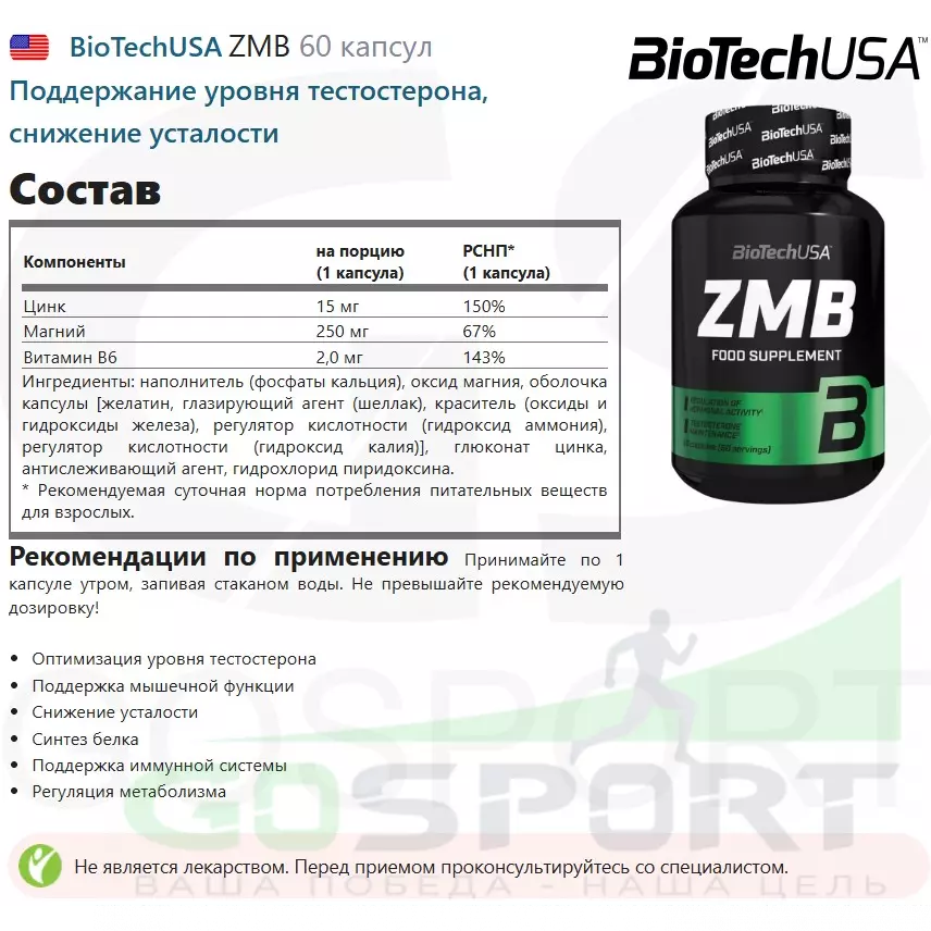 Как и вся продукция BioTechUSA, ZMB состоит только из безопасных и тщательно отобранных ингредиентов.