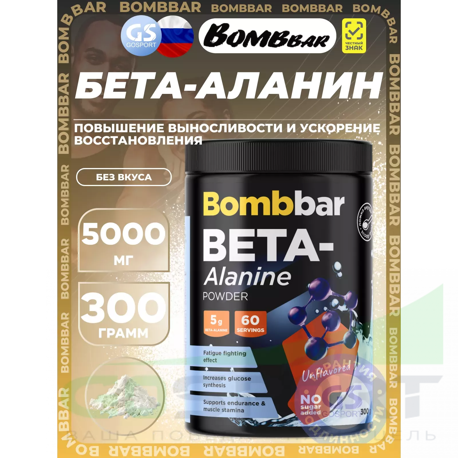 BombBar Beta-Alanine 5000 mg 300 г, Без вкуса — Повышение выносливости и ускорение восстановления