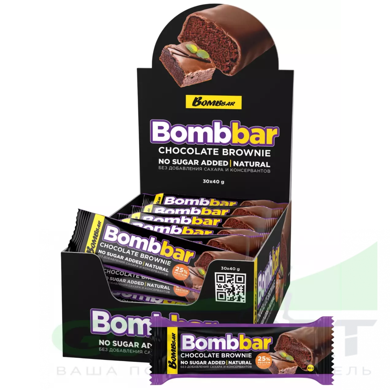 BombBar Батончик в шоколаде без сахара 30 x 40 г, Шоколадный брауни — Полезный и питательный перекус
