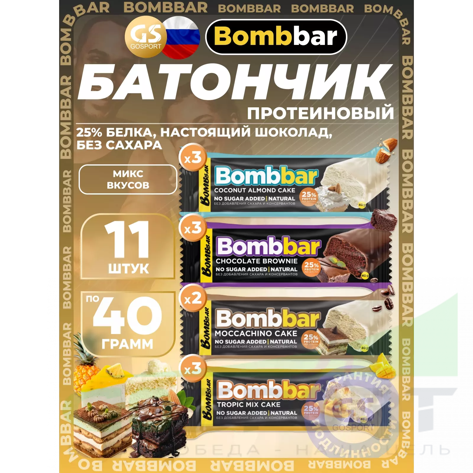 BombBar Батончик в шоколаде без сахара 11 x 40 г, Микс 4 — Полезный и питательный перекус