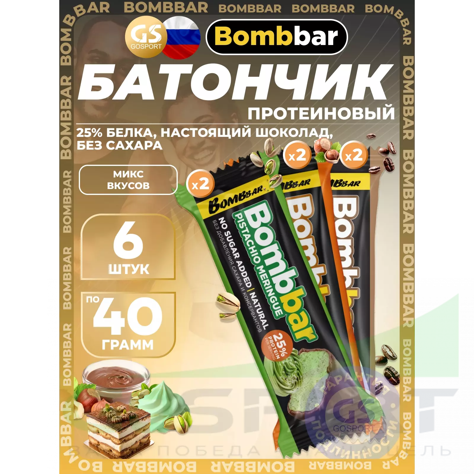 BombBar Батончик в шоколаде без сахара 6 x 40 г, Микс 3 — Полезный и питательный перекус