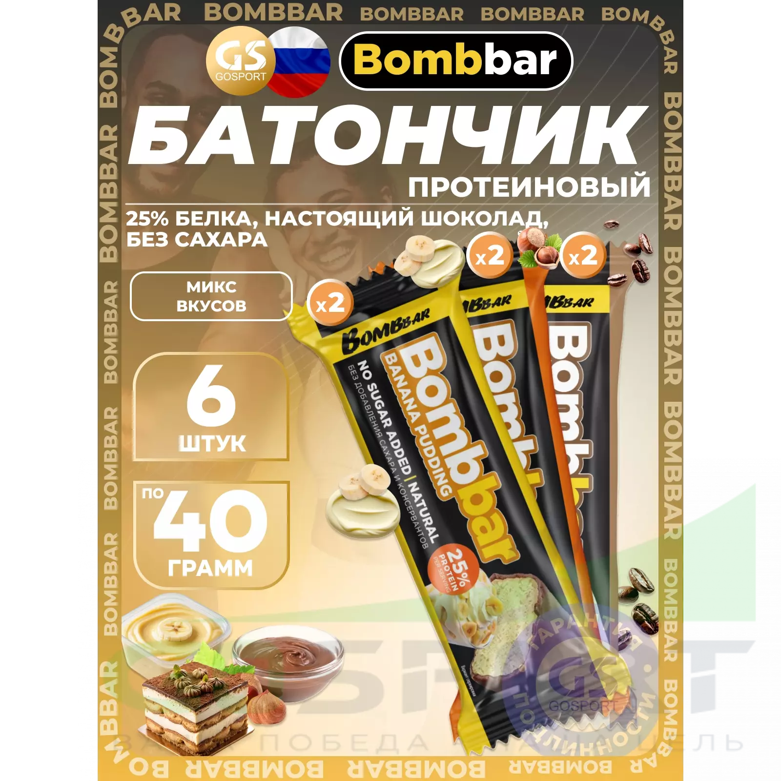 BombBar Батончик в шоколаде без сахара 6 x 40 г, Микс 3 — Полезный и питательный перекус