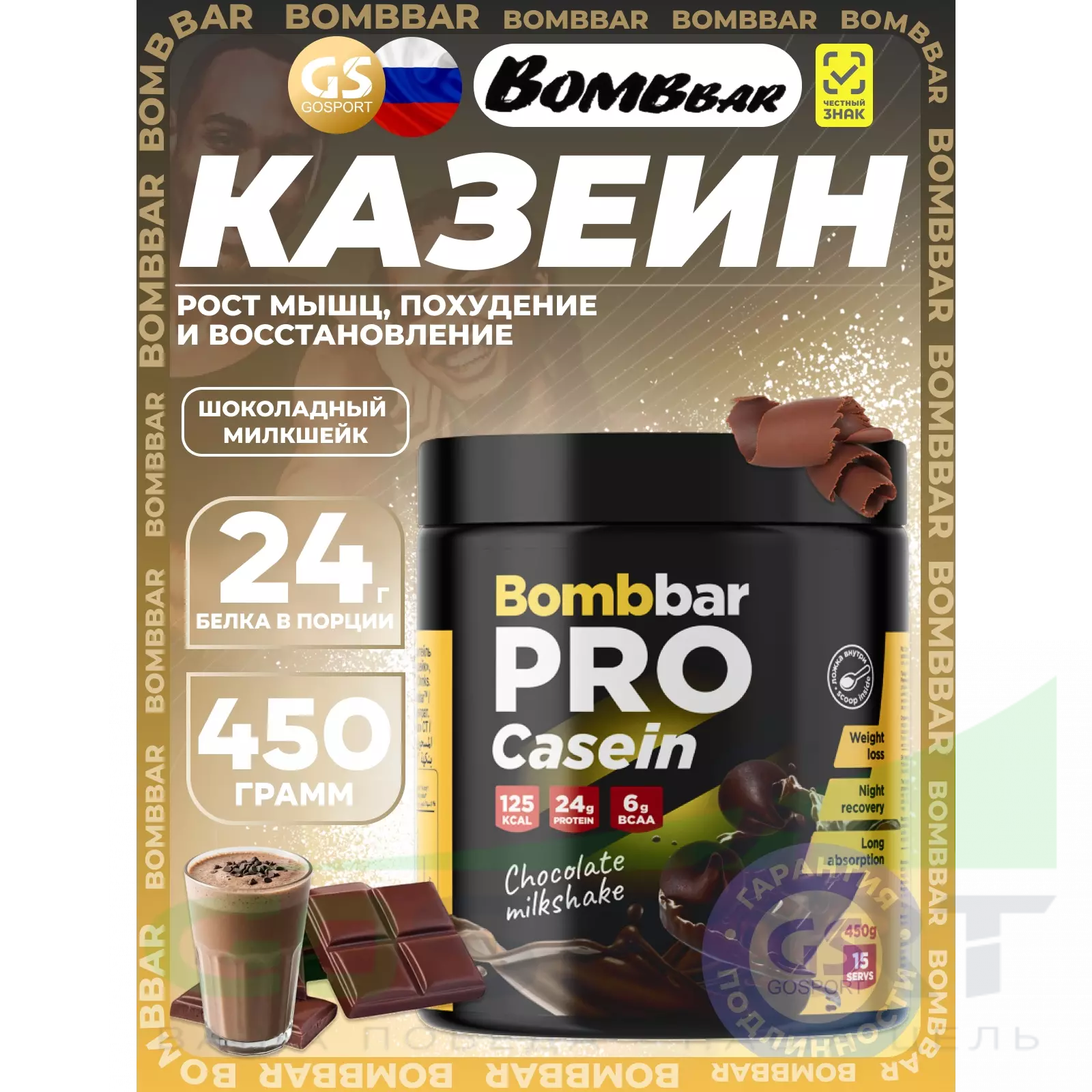 BombBar Pro Casein 450 г, Шоколадный милкшейк — Рост мышц, похудение и восстановление