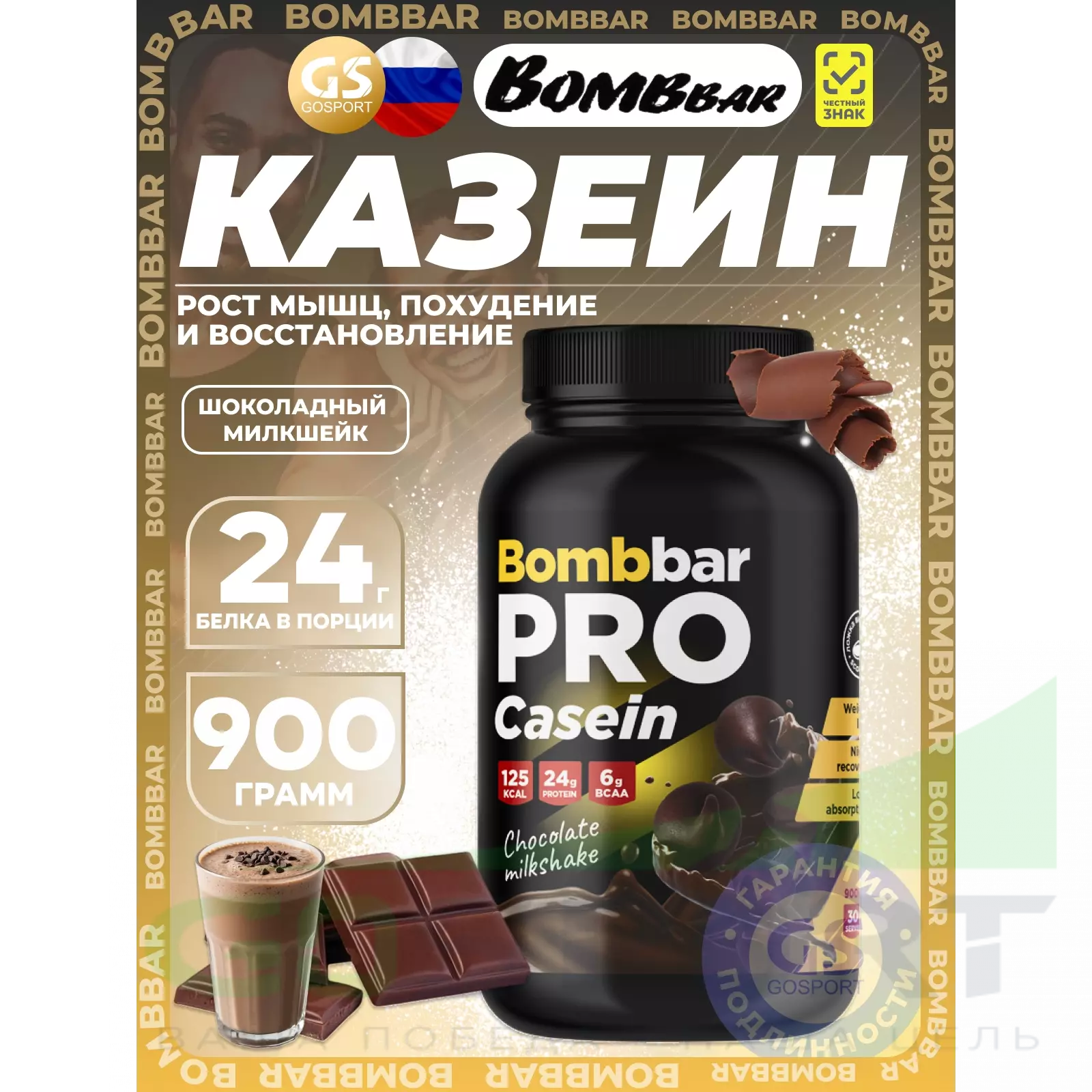 BombBar Pro Casein 900 г, Шоколадный милкшейк — Рост мышц, похудение и восстановление