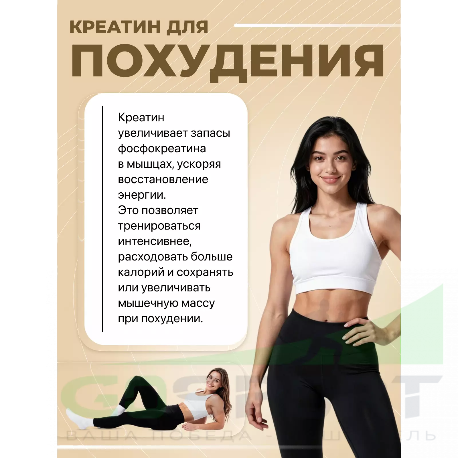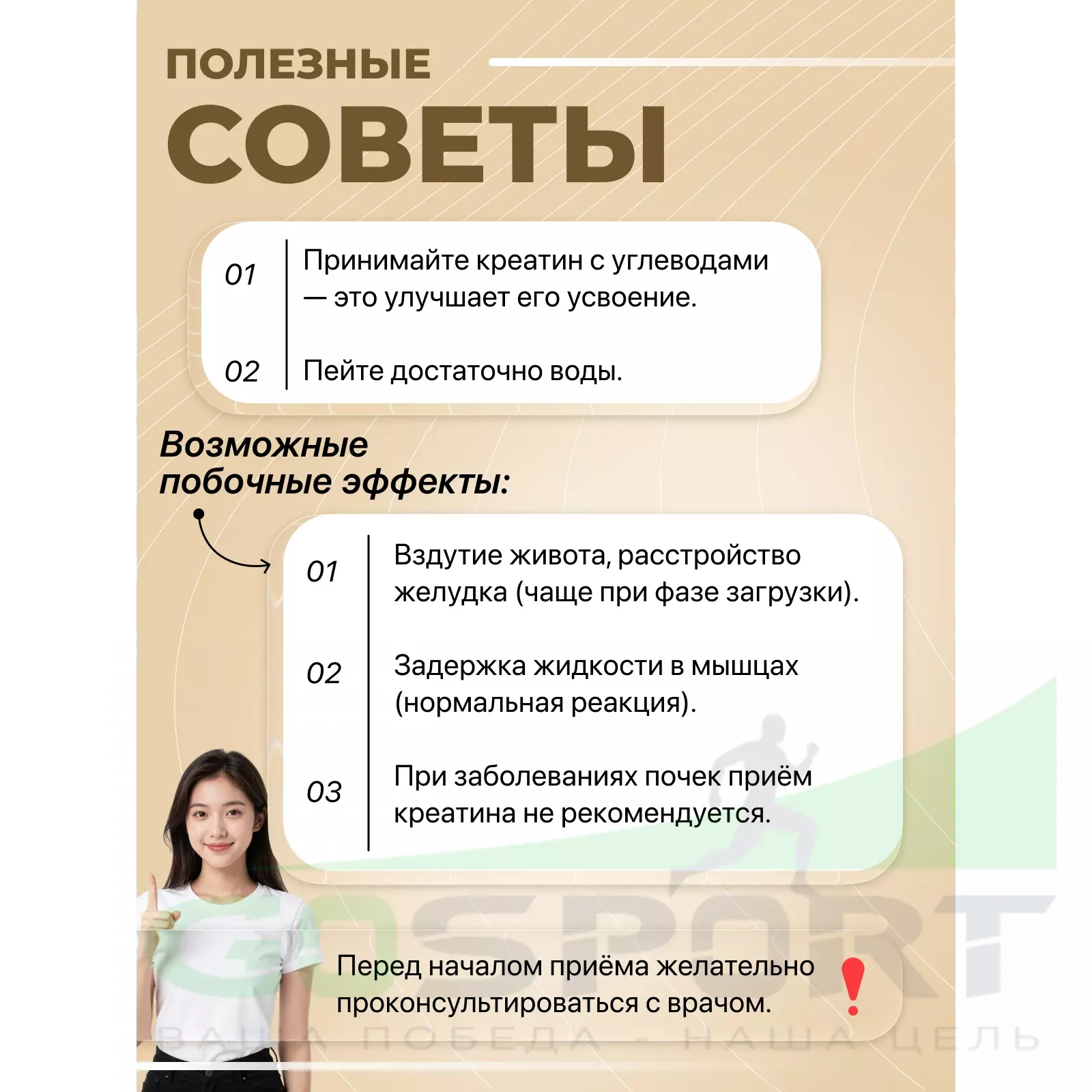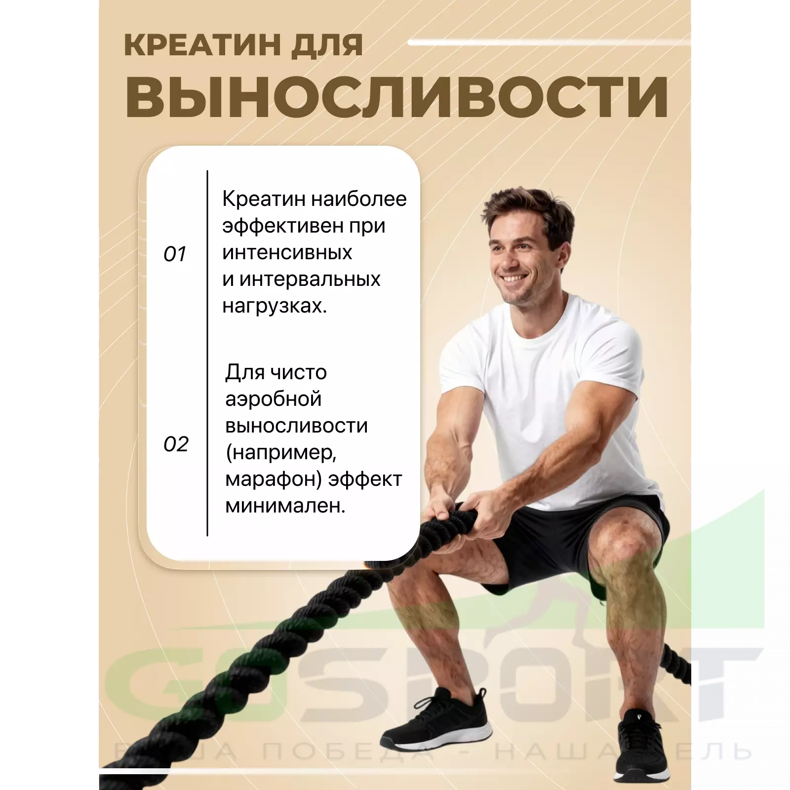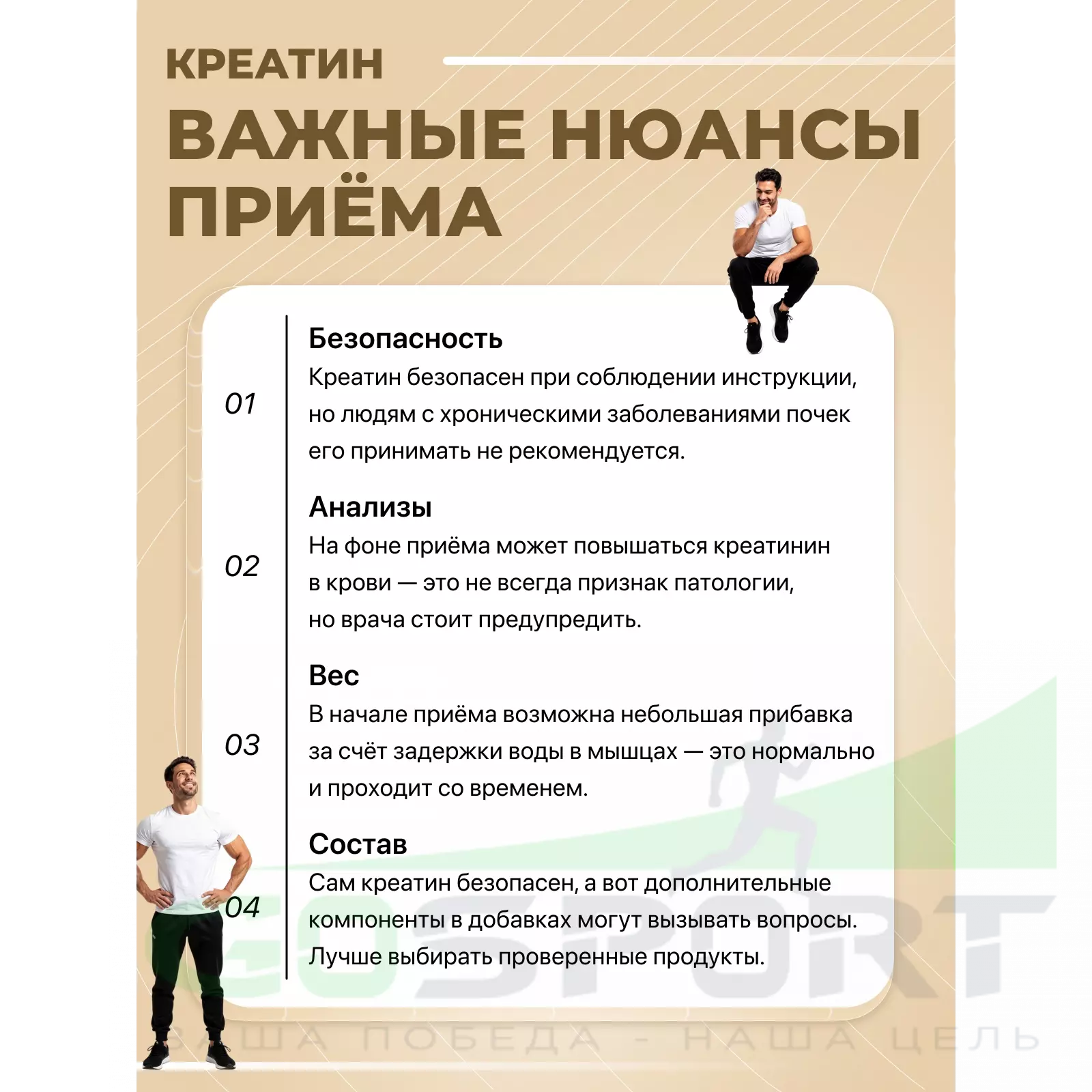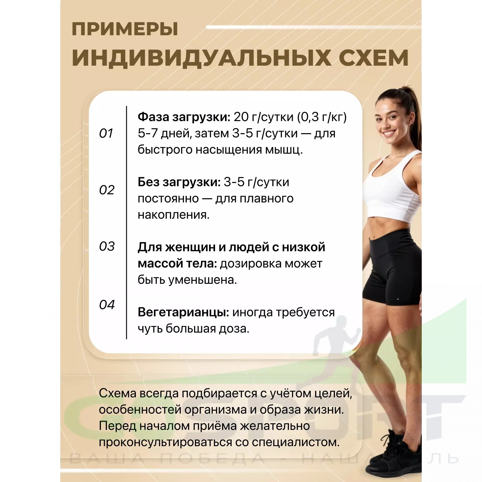- Увеличивает силу и мощность – помогает быстрее восстанавливать АТФ (основной источник энергии для мышц), что улучшает показатели в силовых и взрывных упражнениях.