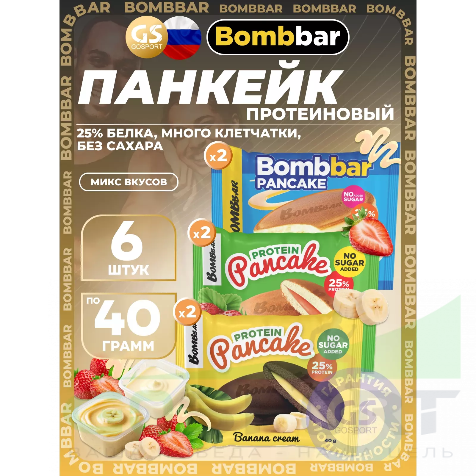 BombBar Панкейк протеиновый 6 x 40 г, Микс 3 — Полезный и питательный перекус