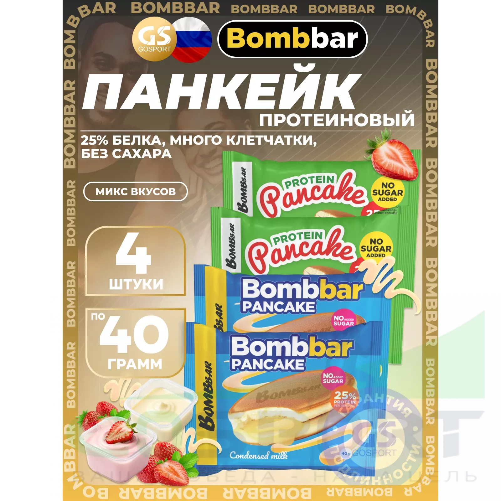 BombBar Панкейк протеиновый 4 x 40 г, Микс 2 — Полезный и питательный перекус
