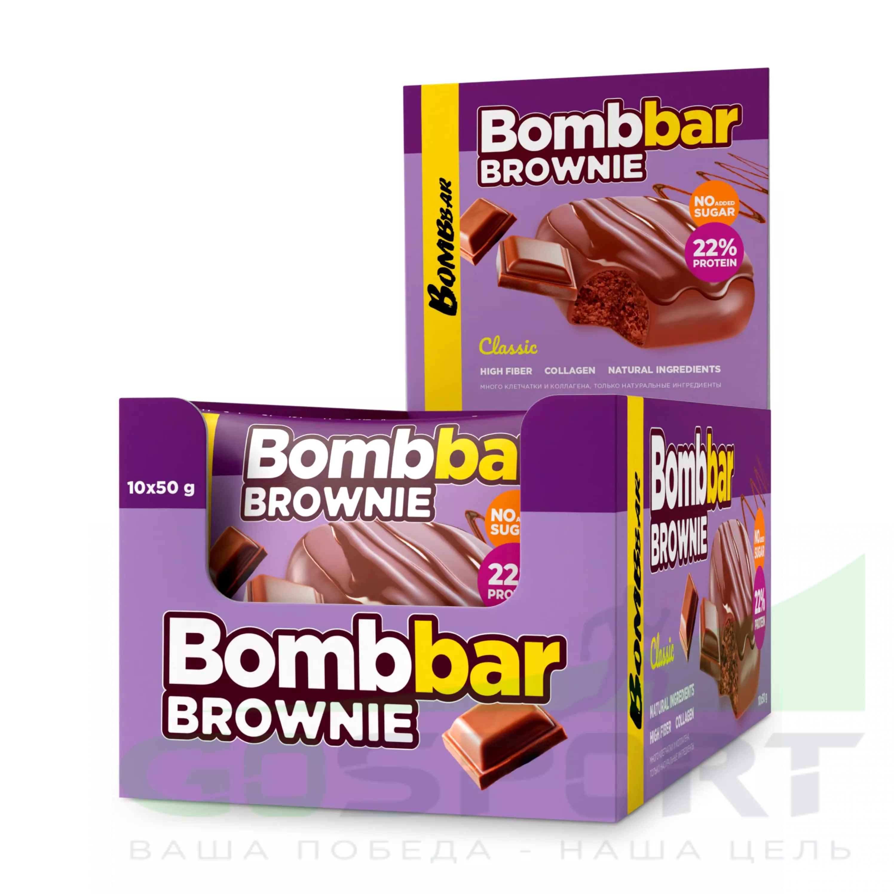 BombBar Печенье глазированное Brownie 10 x 50 г, Классический — Полезный перекус и поддержка мышц