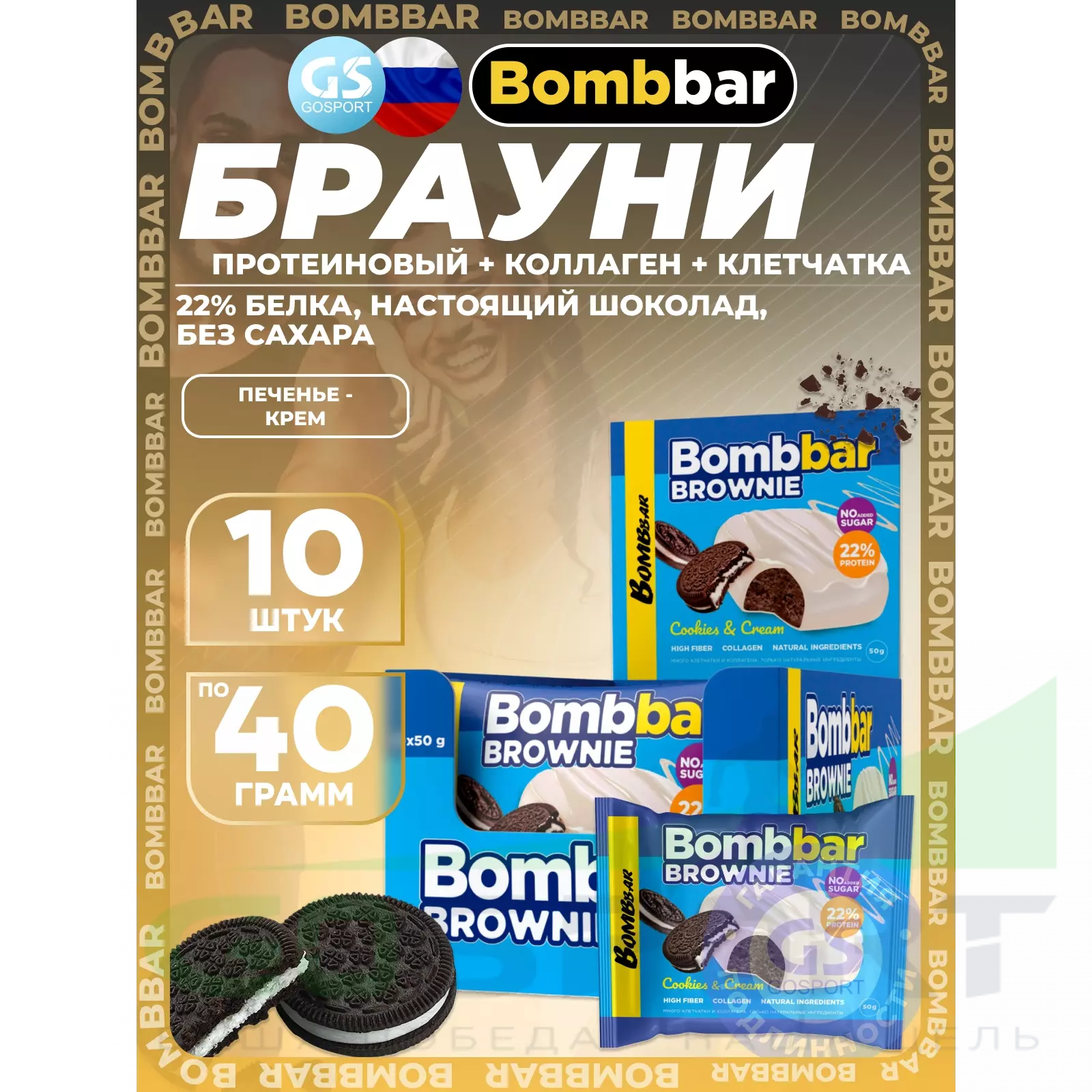 BombBar Печенье глазированное Brownie 10 x 50 г, Печенье-крем — Полезный перекус и поддержка мышц