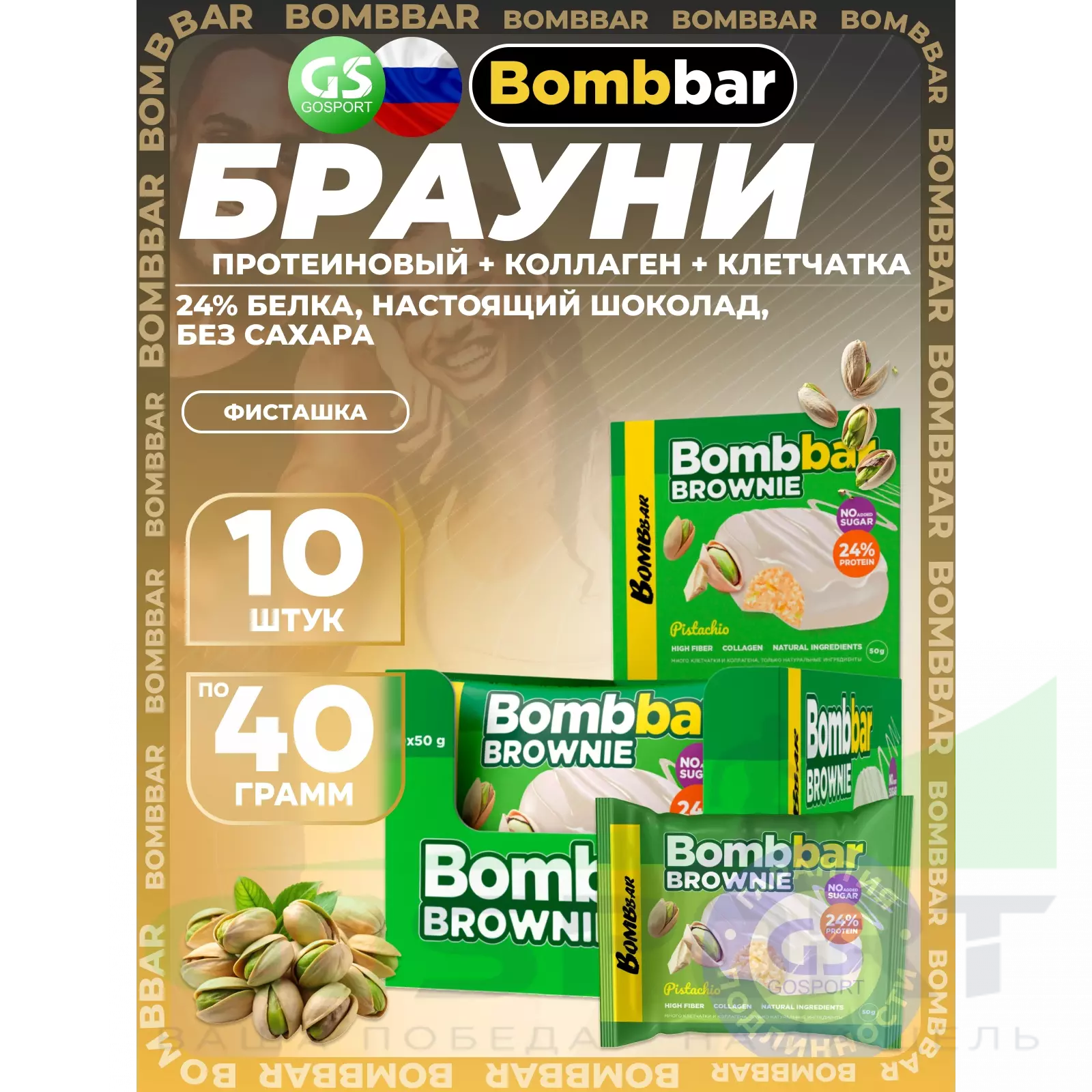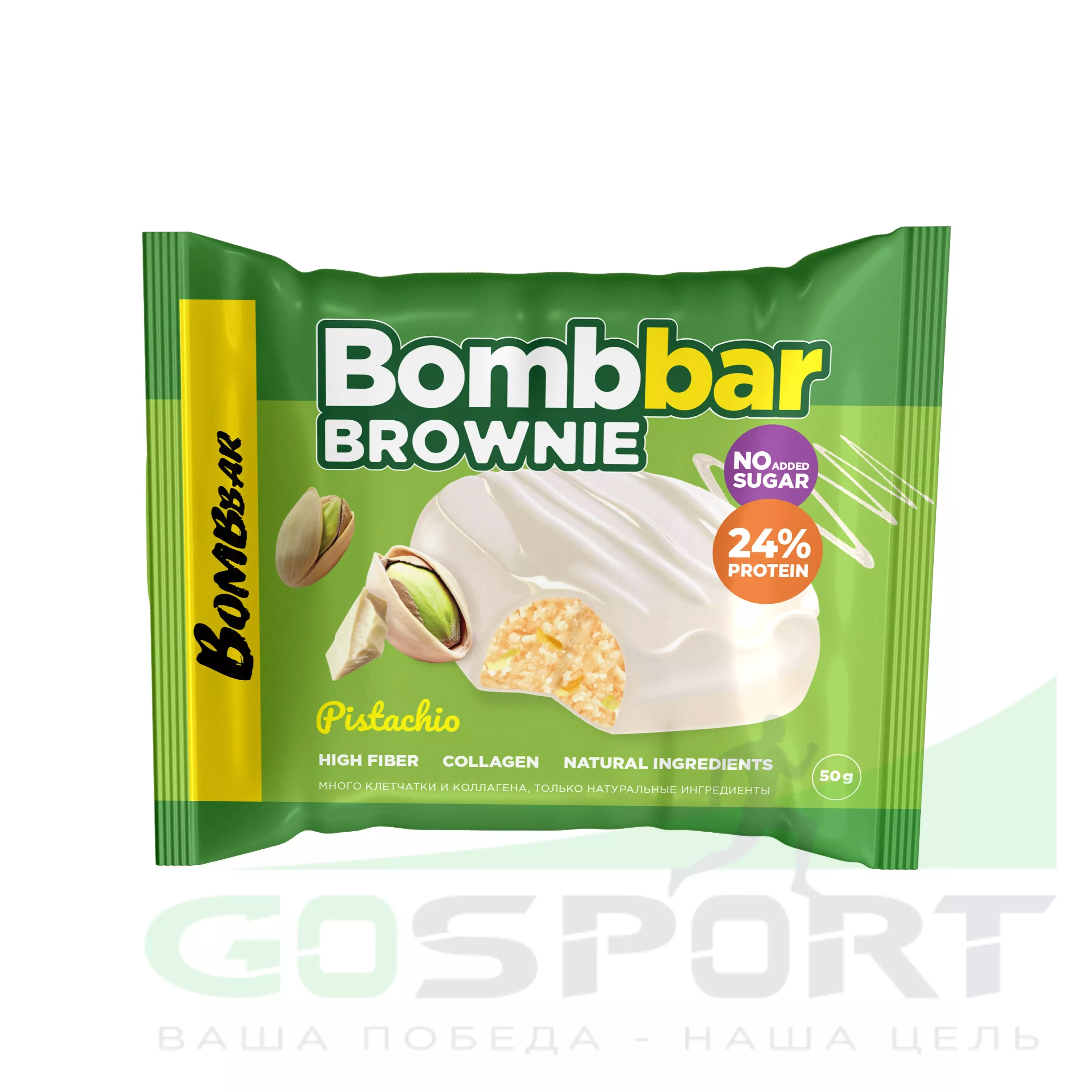 BombBar Печенье глазированное Brownie 10 x 50 г, Фисташка — Полезный перекус и поддержка мышц