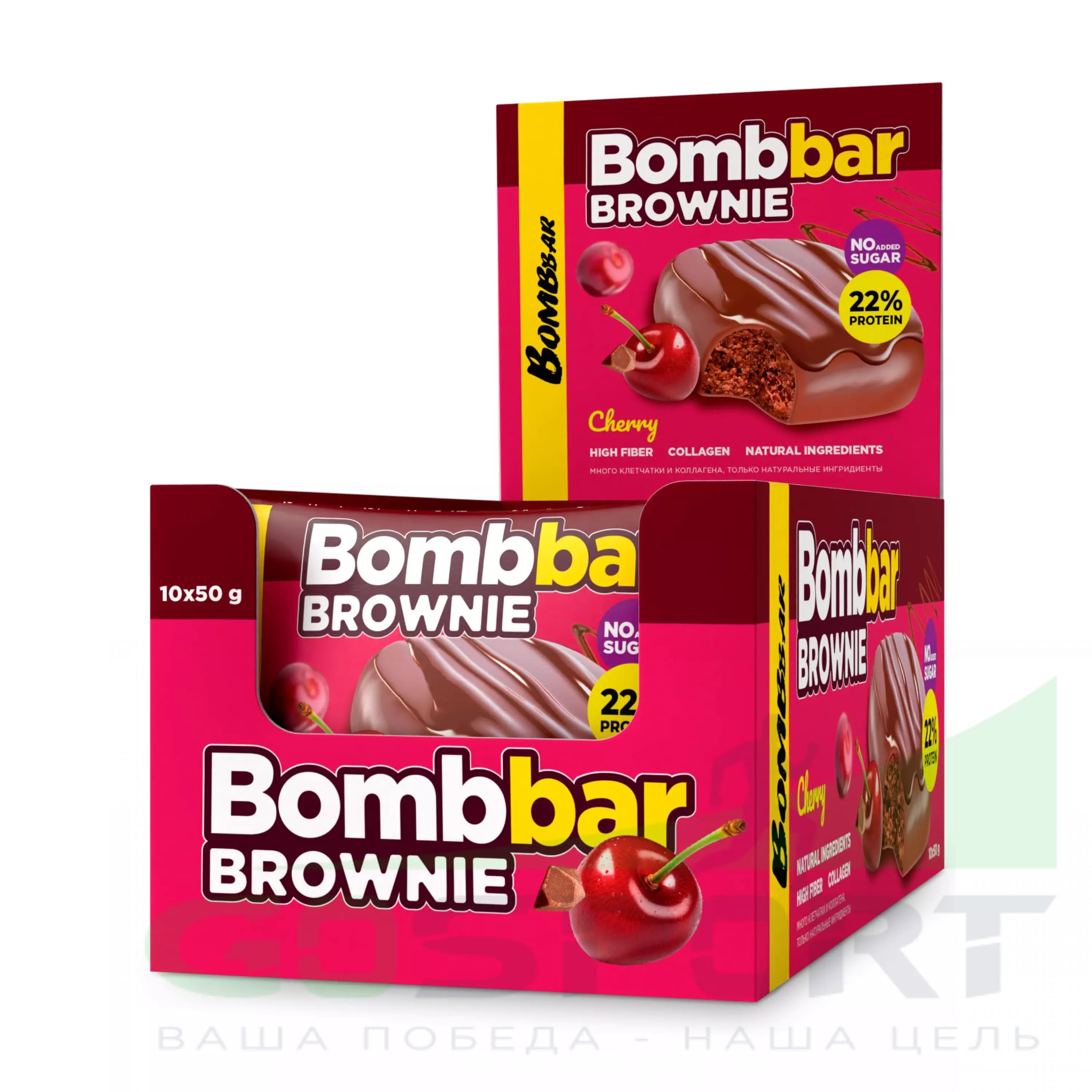 BombBar Печенье глазированное Brownie 10 x 50 г, Вишня — Полезный перекус и поддержка мышц
