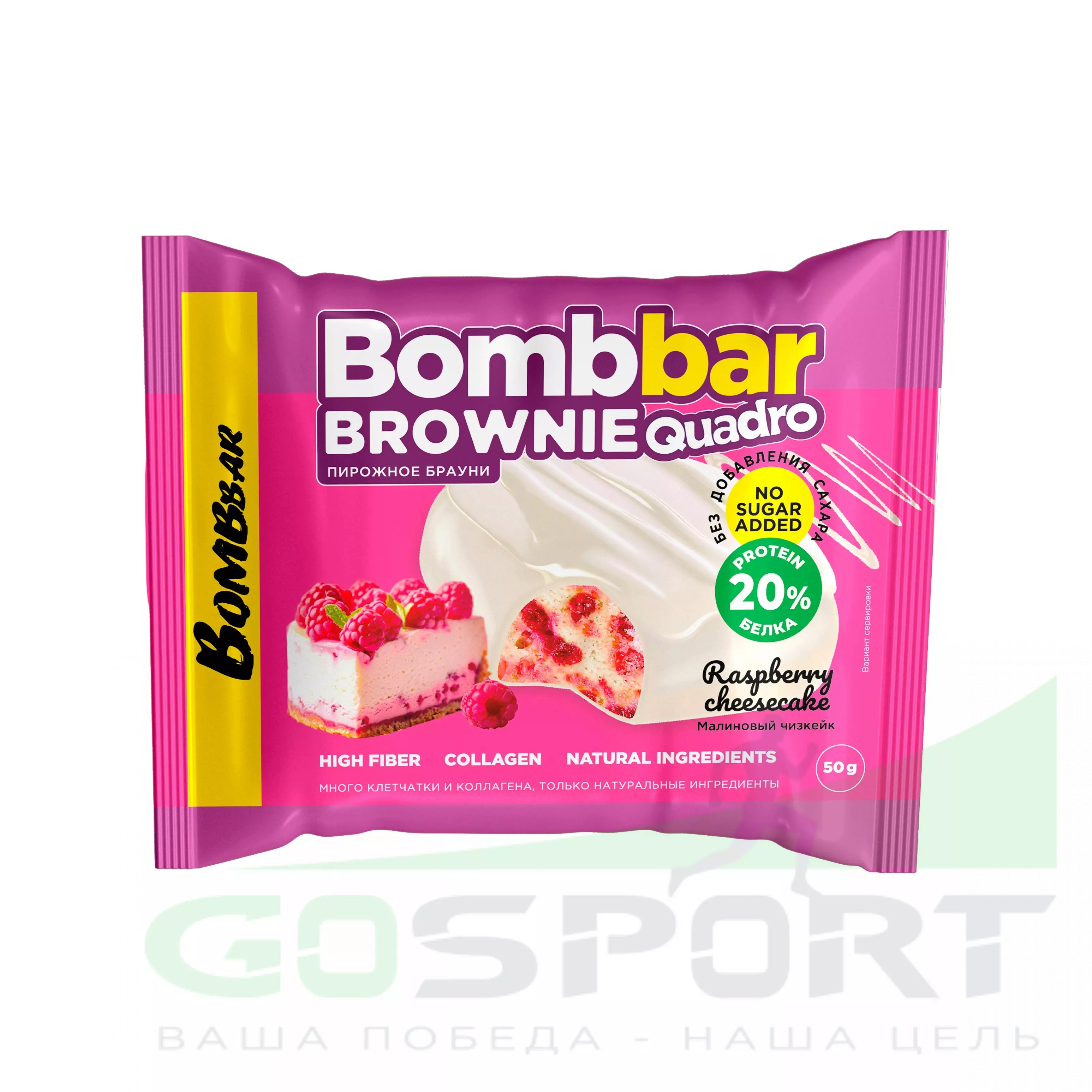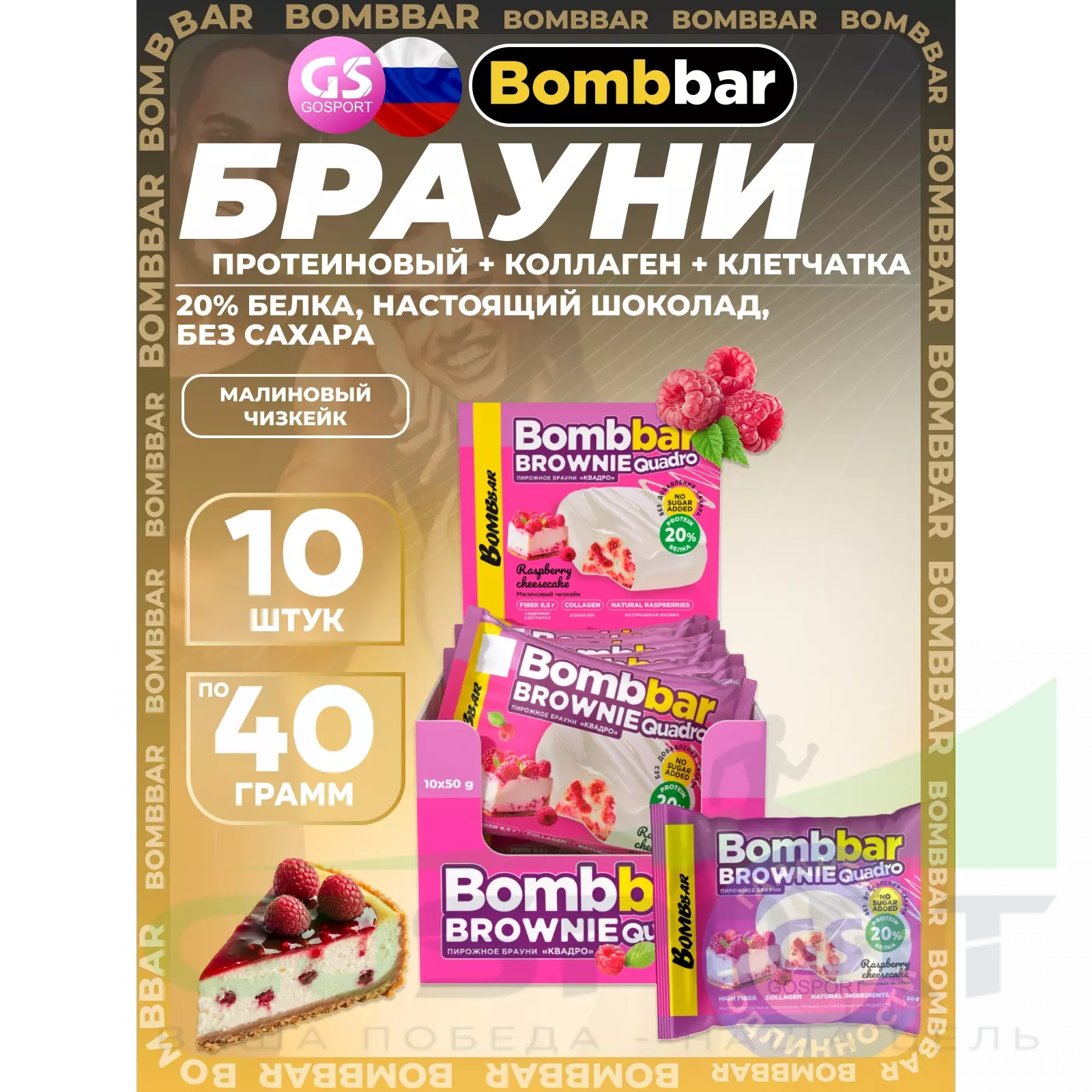 BombBar Печенье глазированное Brownie Quadro 10 x 50 г, Малиновый чизкейк — Полезный перекус и поддержка мышц