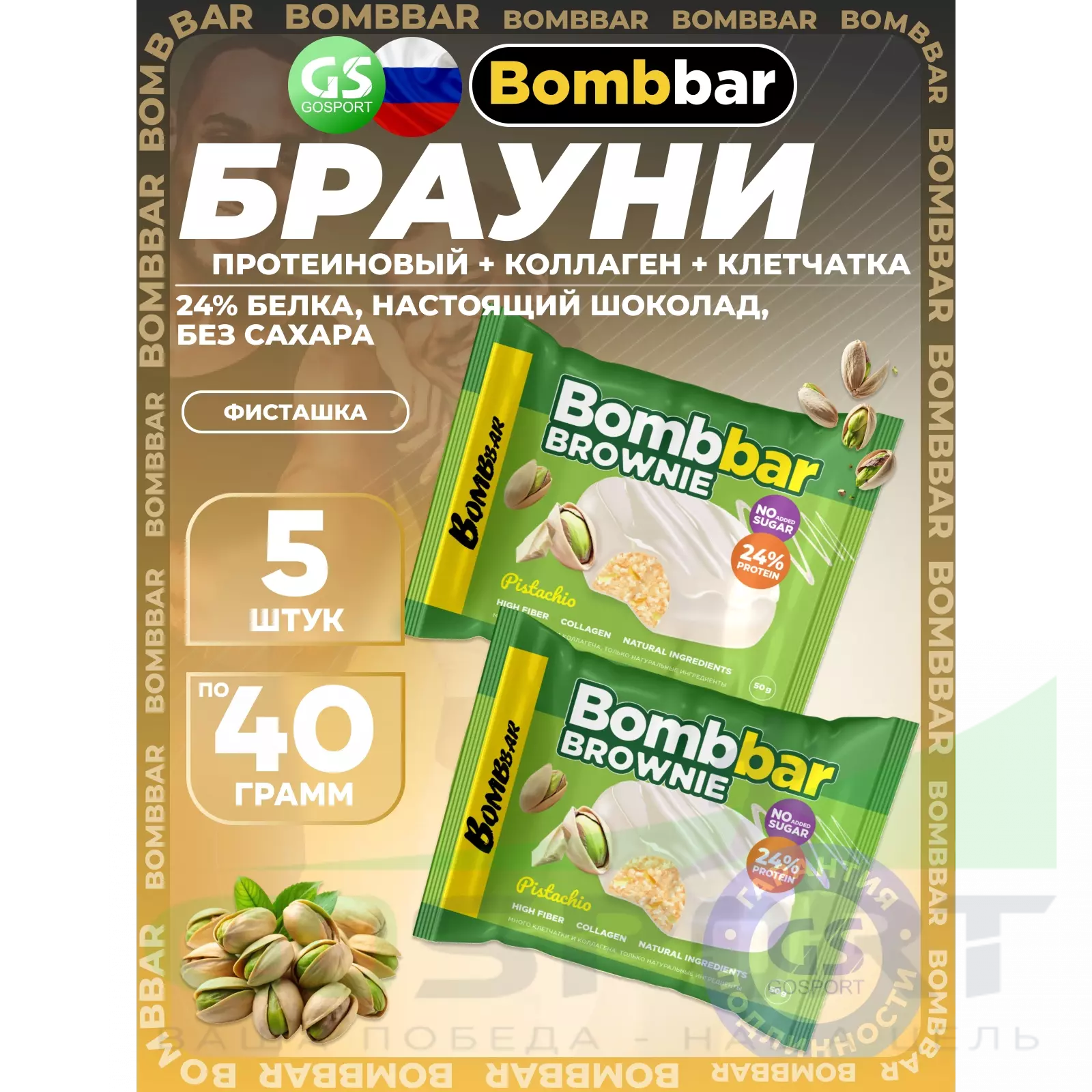 BombBar Печенье глазированное Brownie 5 x 40 г, Фисташка — Полезный перекус и поддержка мышц