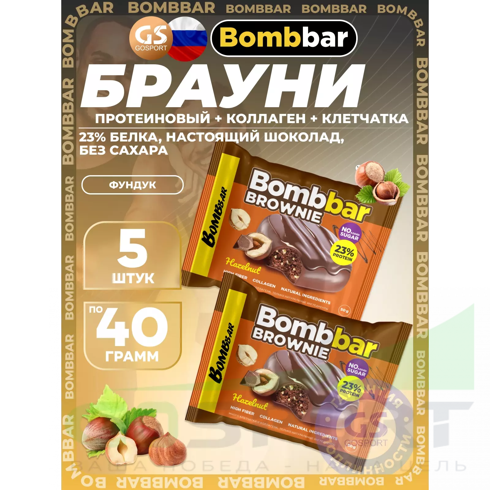 BombBar Печенье глазированное Brownie 5 x 40 г, Фундук — Полезный перекус и поддержка мышц