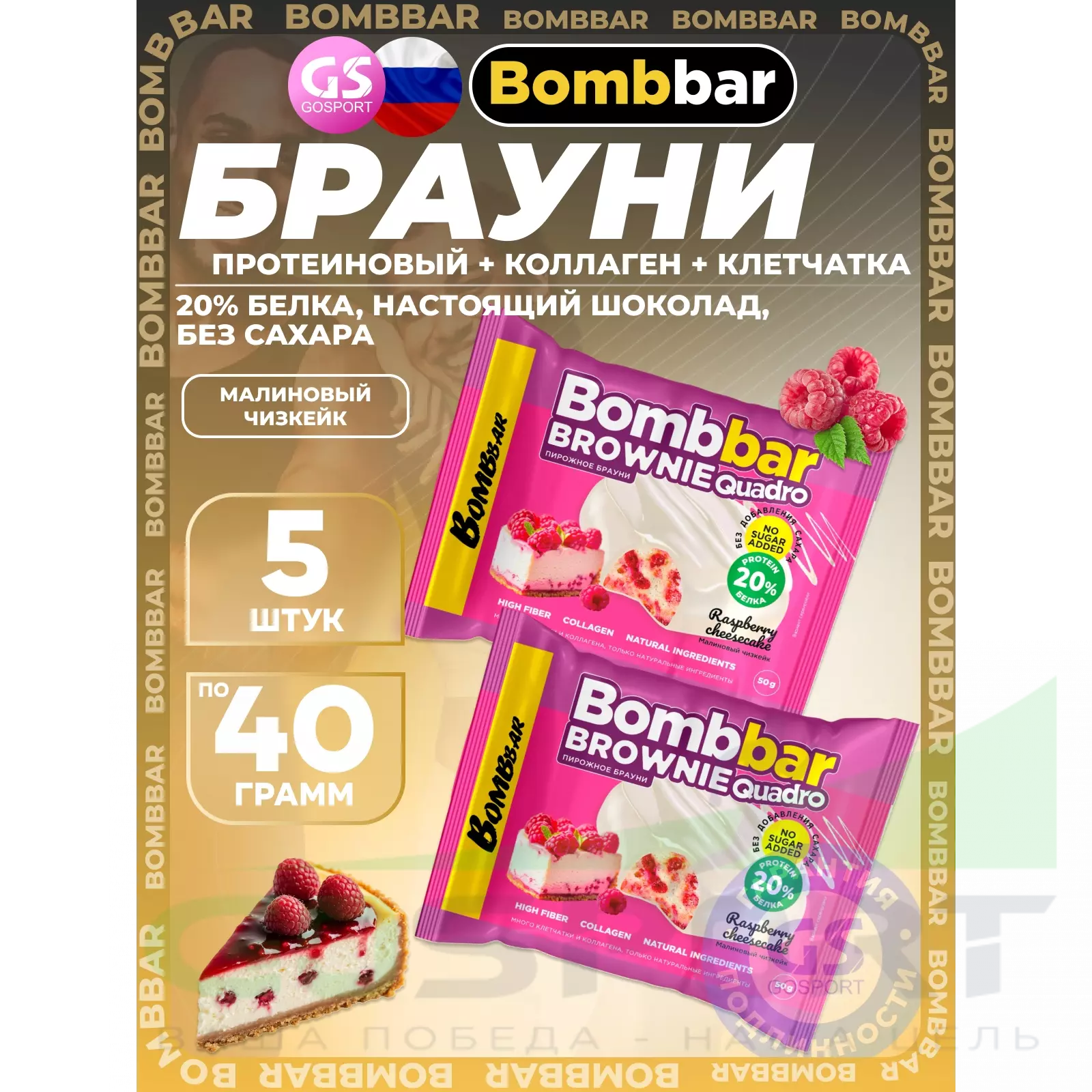 BombBar Печенье глазированное Brownie Quadro 5 x 40 г, Малиновый чизкейк — Полезный перекус и поддержка мышц