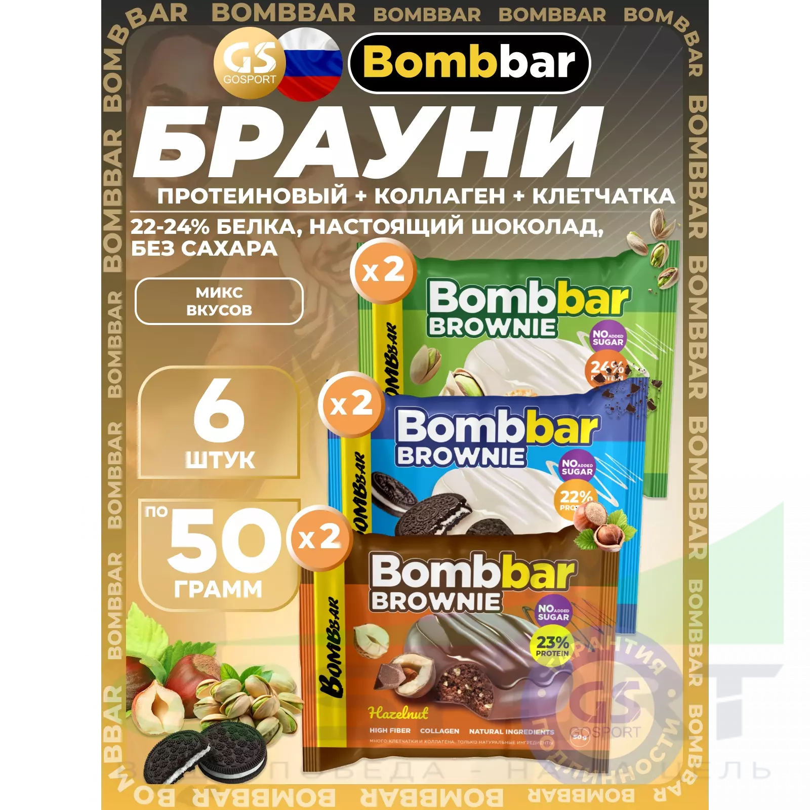 BombBar Печенье глазированное Brownie 6 x 50 г, Микс 3 — Полезный перекус и поддержка мышц