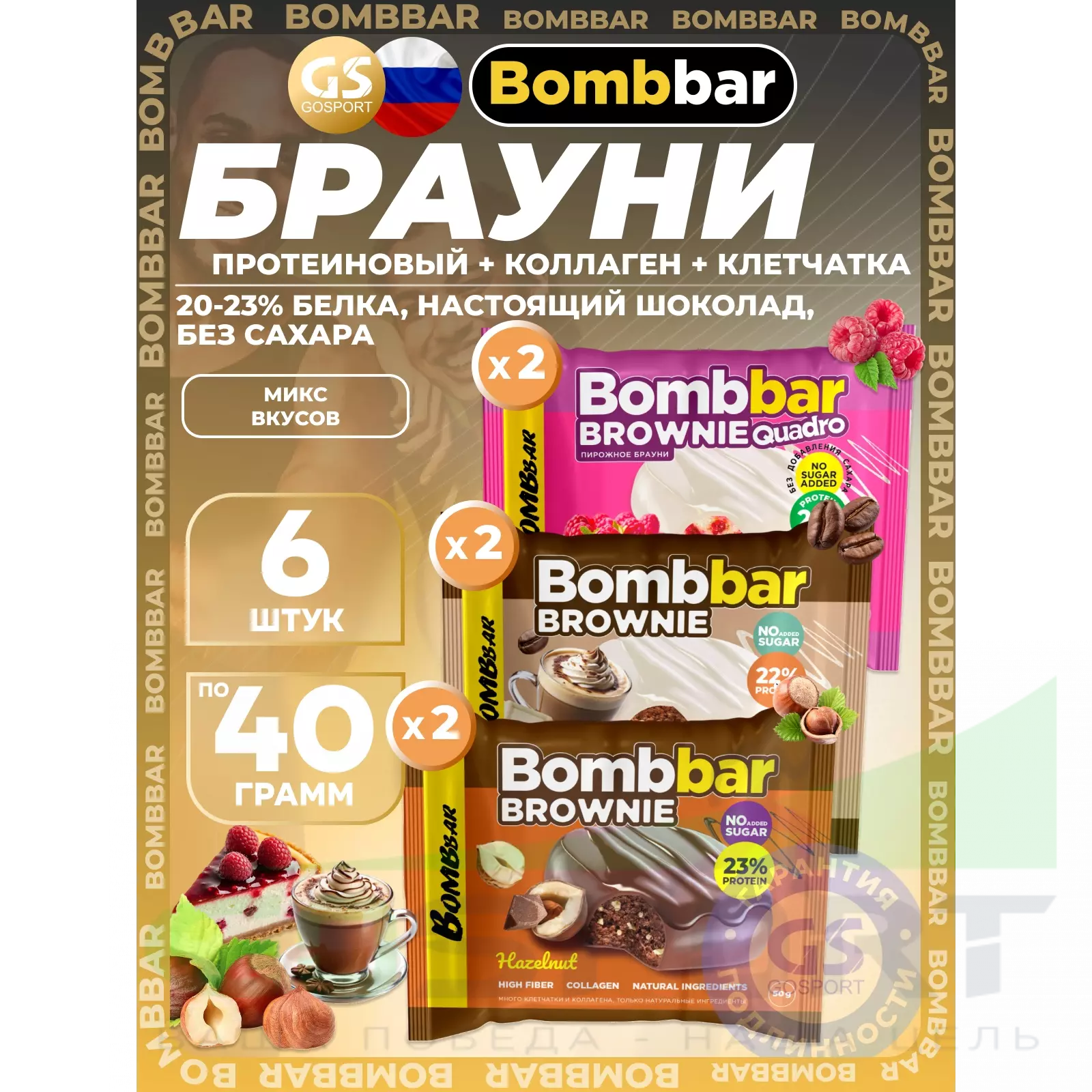 BombBar Печенье глазированное Brownie 6 x 40 г, Микс 3 — Полезный перекус и поддержка мышц