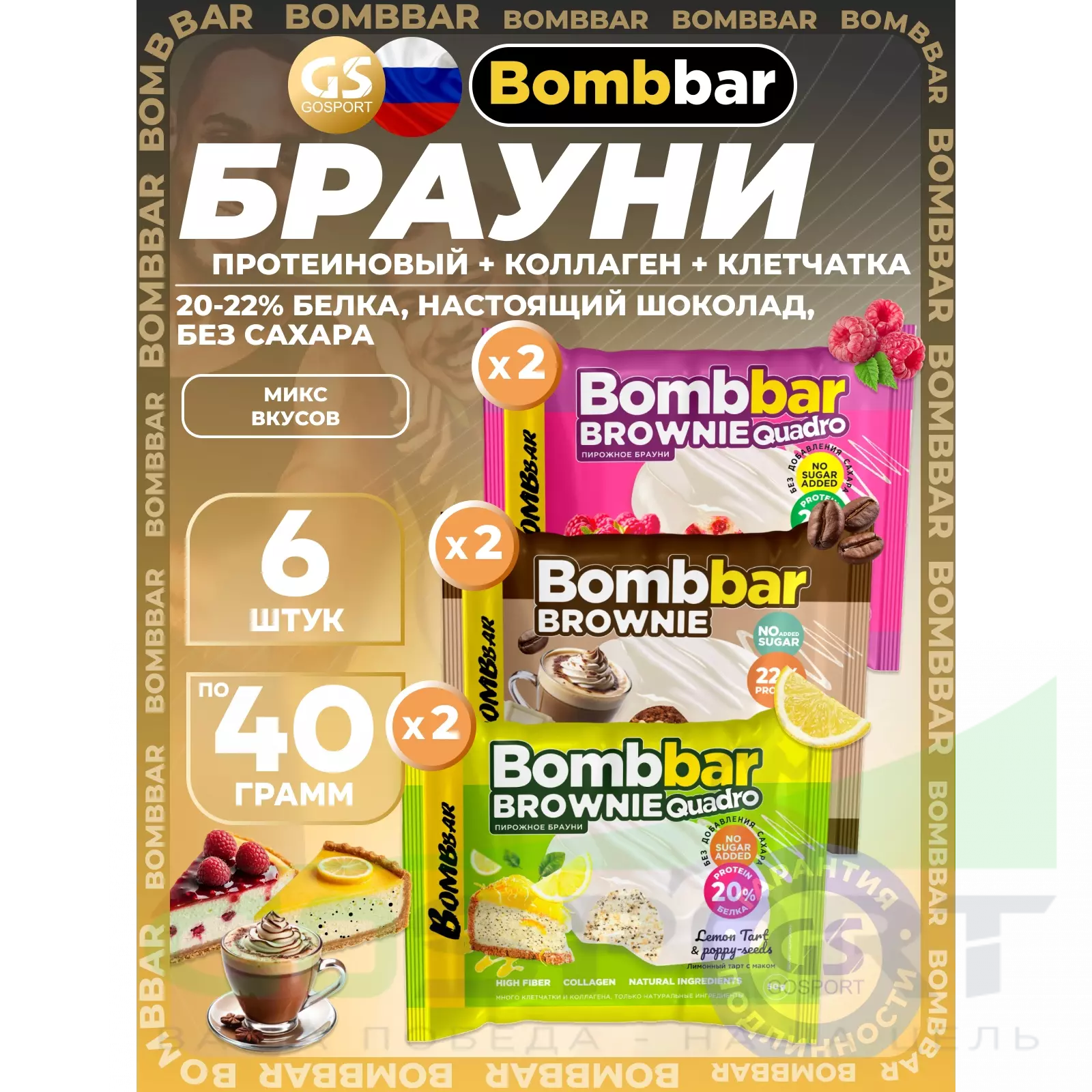 BombBar Печенье глазированное Brownie 6 x 40 г, Микс 3 — Полезный перекус и поддержка мышц