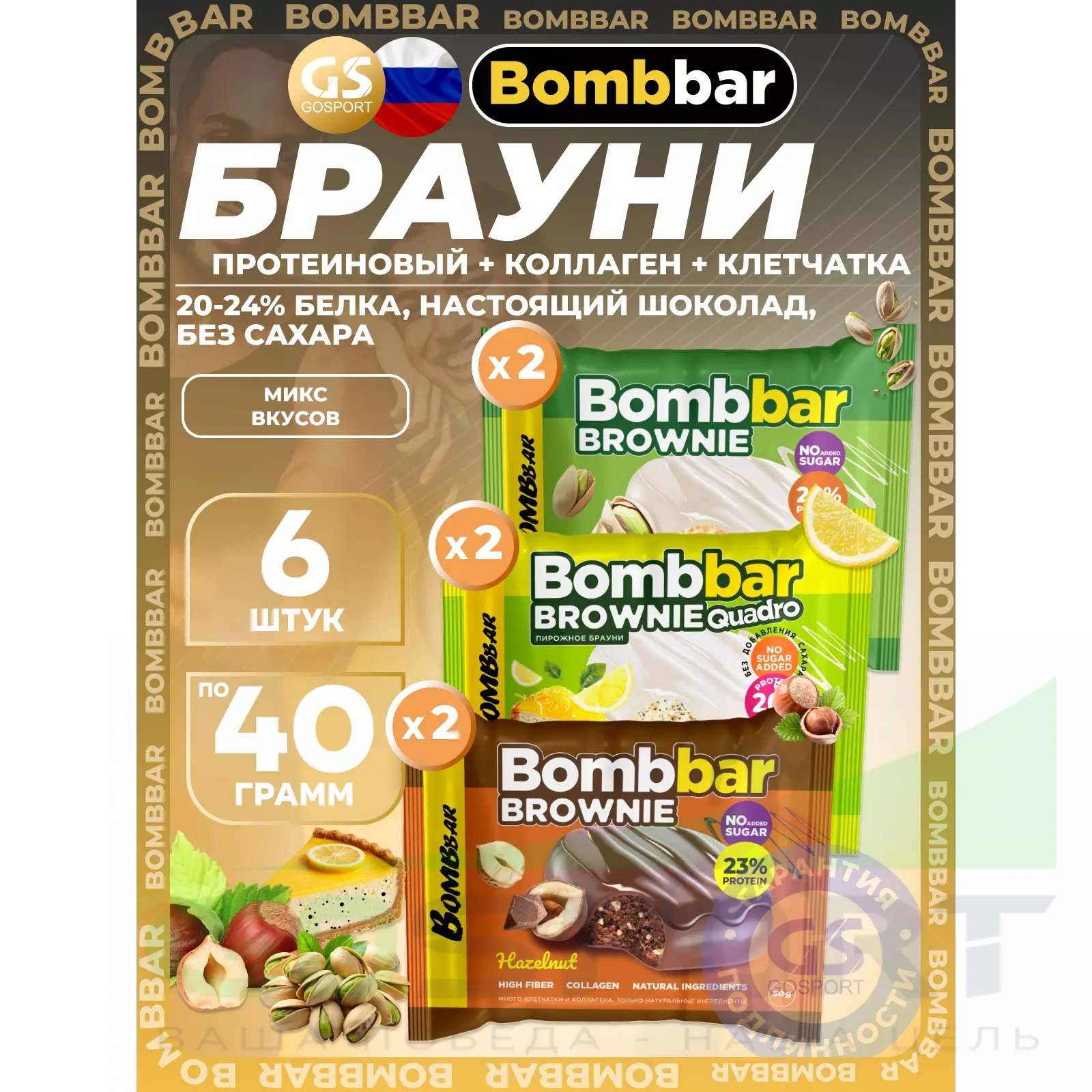 BombBar Печенье глазированное Brownie 6 x 40 г, Микс 3 — Полезный перекус и поддержка мышц