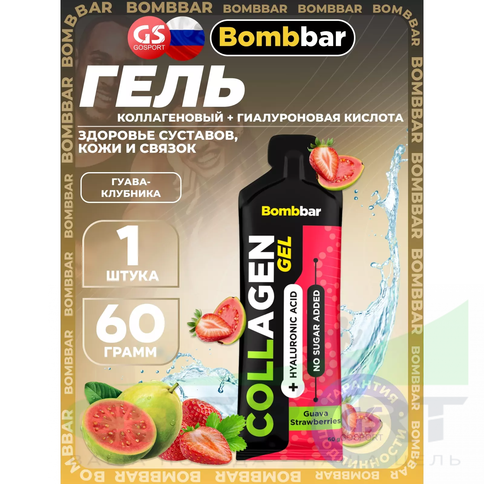BombBar Collagen gel 5000 mg + hyaluronic acid 60 г, Гуава-Клубника — Здоровье суставов, кожи и связок