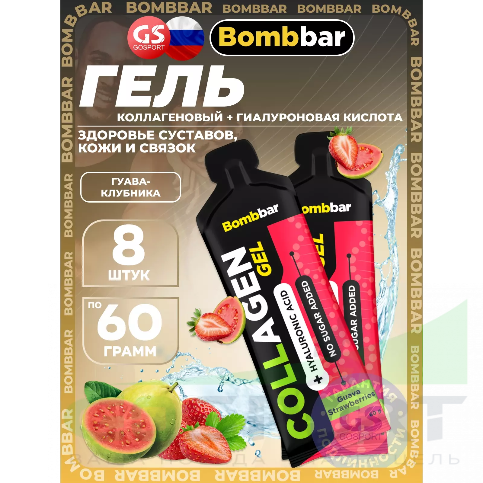 BombBar Collagen gel 5000 mg + hyaluronic acid 8 x 60 г, Гуава-Клубника — Здоровье суставов, кожи и связок