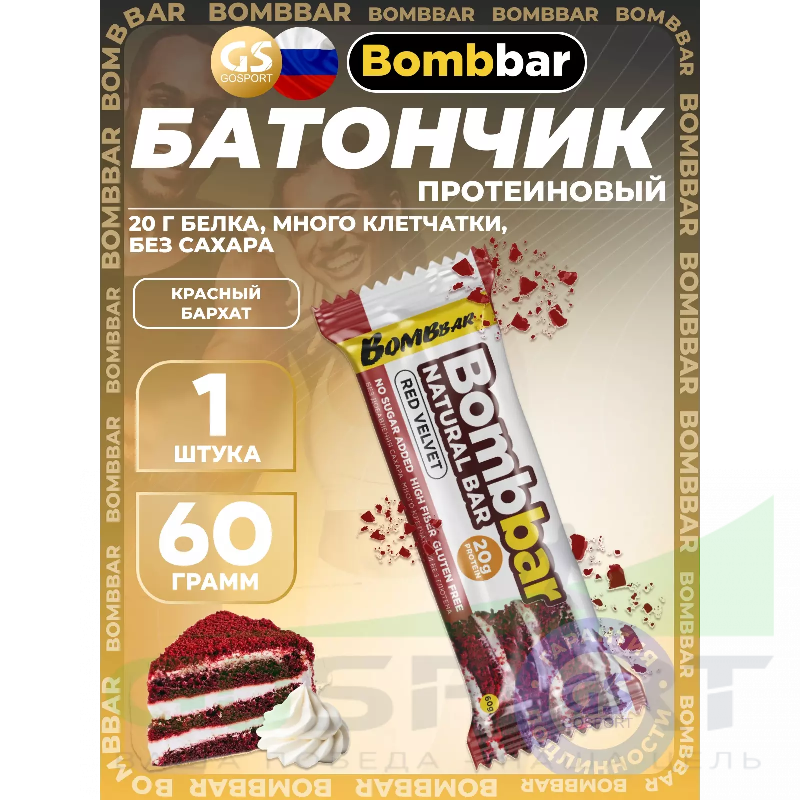 BombBar Protein Bar 60 г, Красный бархат — Полезный перекус и поддержка мышц