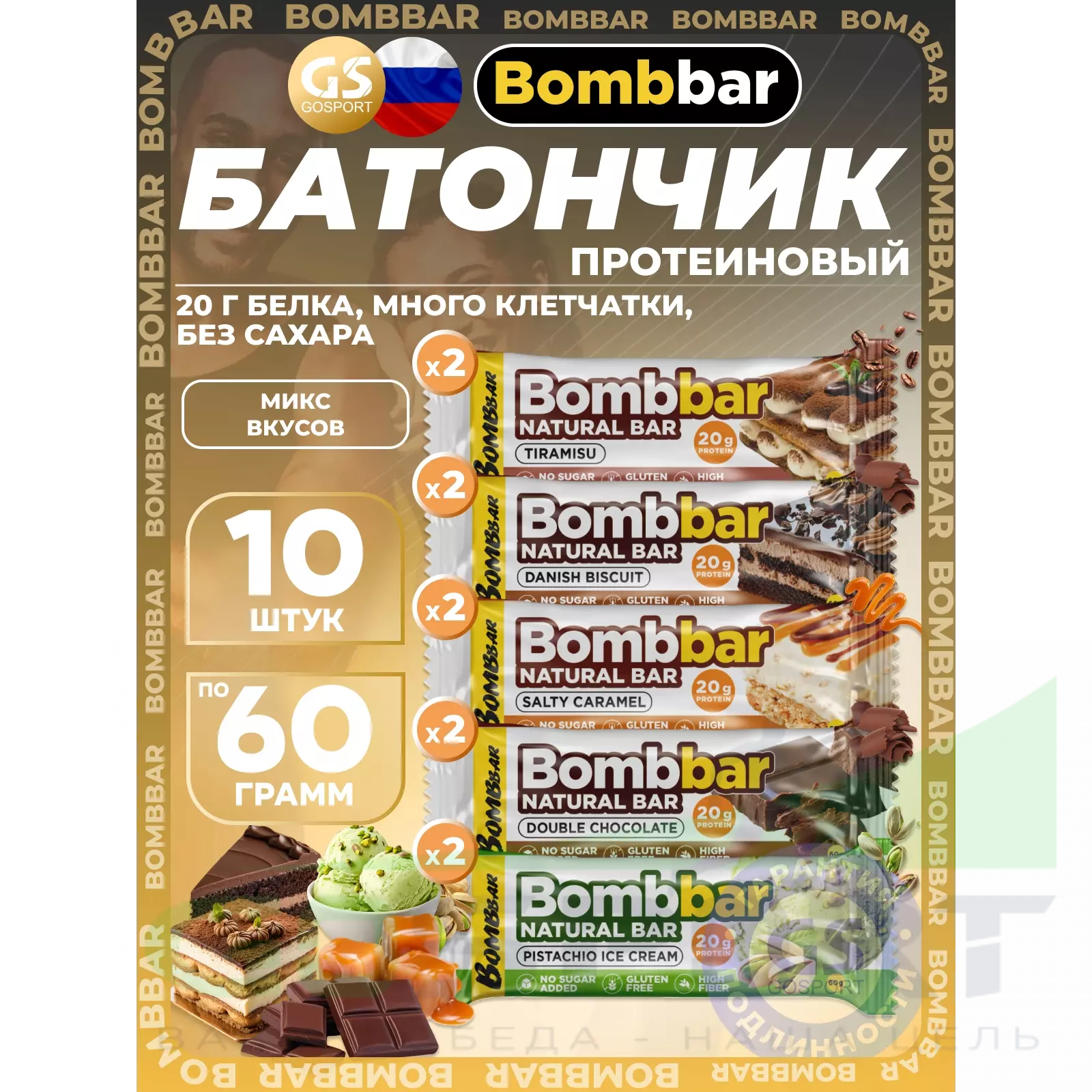 BombBar Протеиновый батончик Natural Bar 10 x 60 г, Микс 5