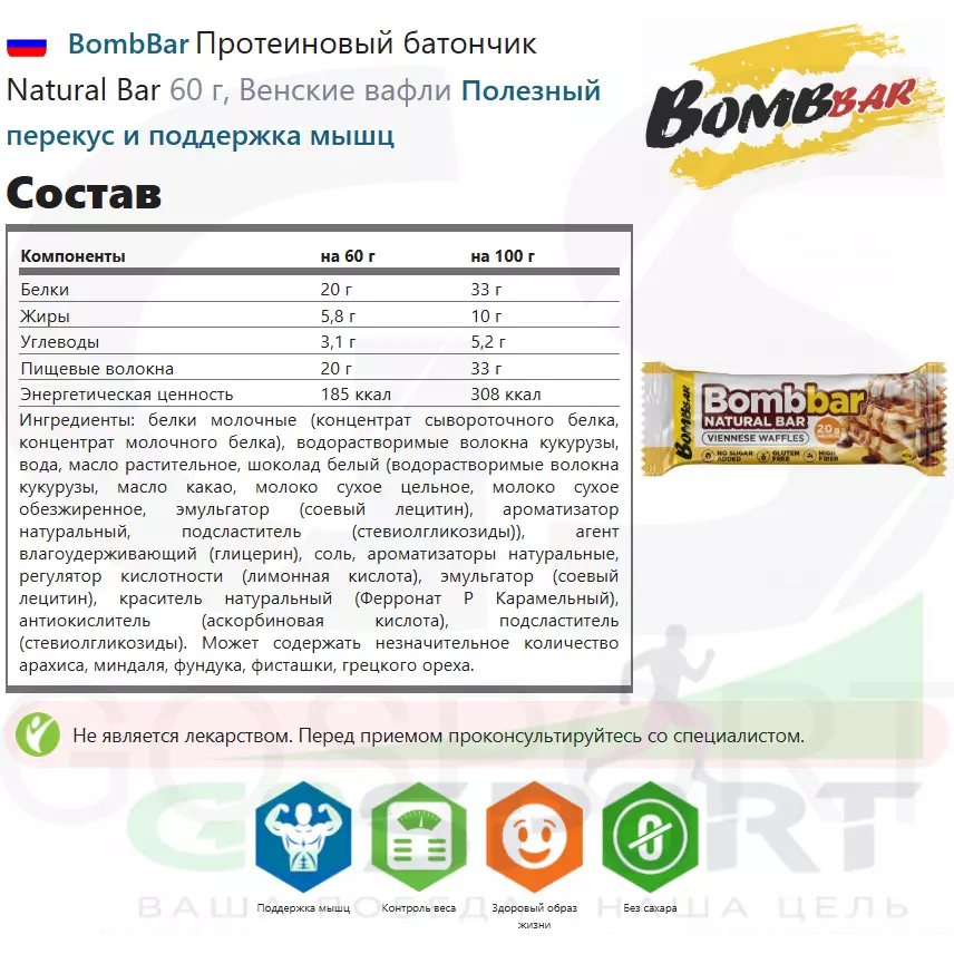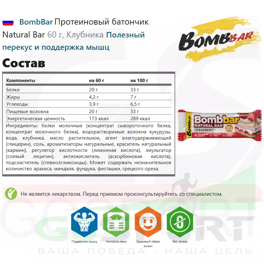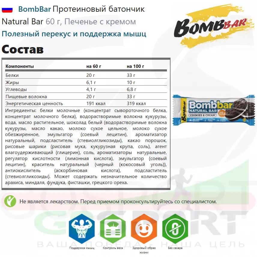 Почему именно Bombbar? BombBar отличает уникальный состав из натурального высококачественного сырья и, конечно, великолепный вкус. Продукция BombBar соответствует требованиям Халяль и имеет соответствующий сертификат. Забудь про вредное и калорийное сладкое! Вкусняшки BombBar делают каждый приём пищи полезным и вкусным. Вместе с BombBar достигать спортивных успехов становится легче!