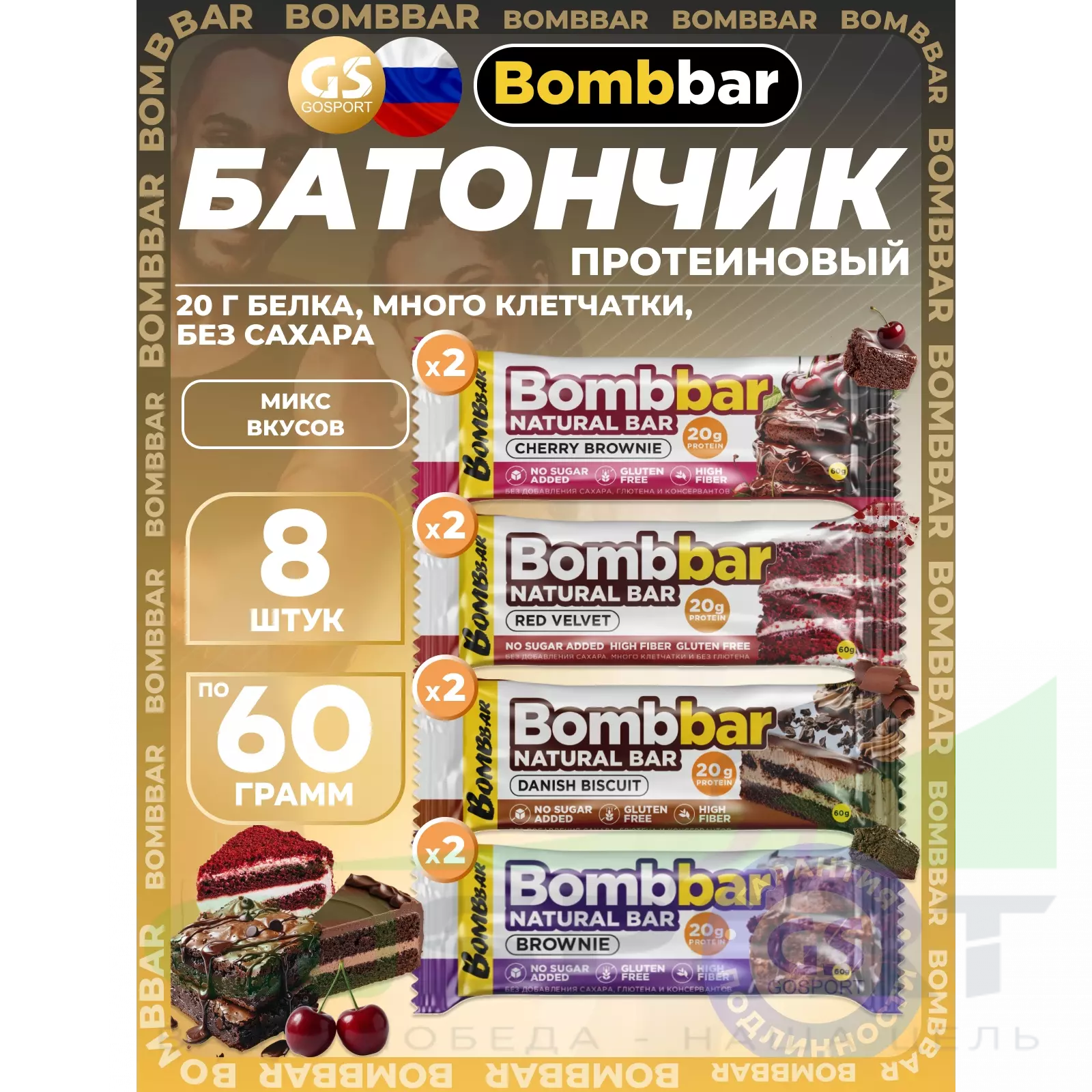 BombBar Protein Bar 8 x 60 г, Микс 4