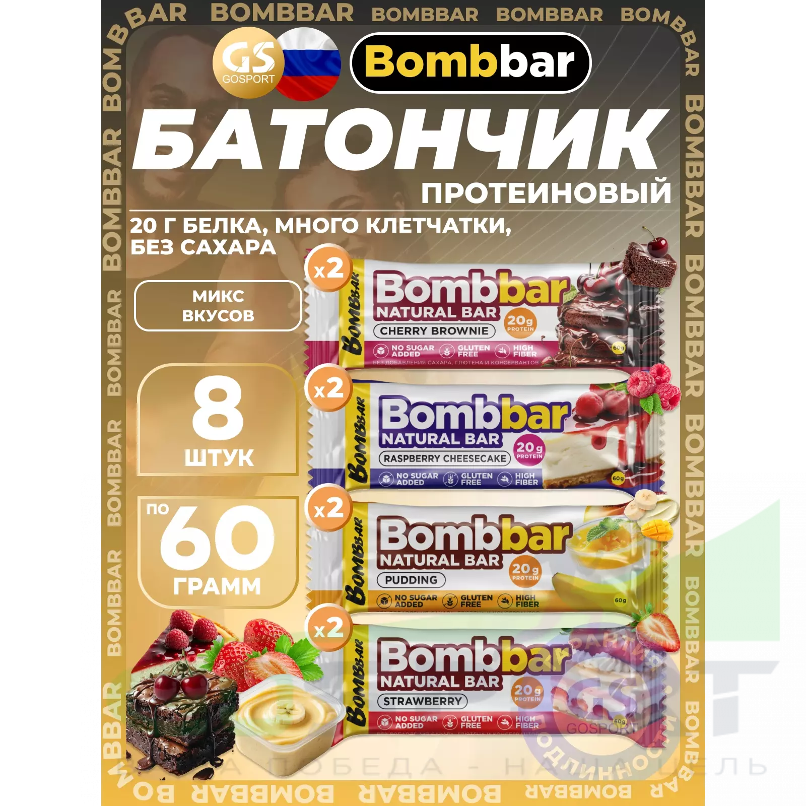 BombBar Protein Bar 8 x 60 г, Микс 4