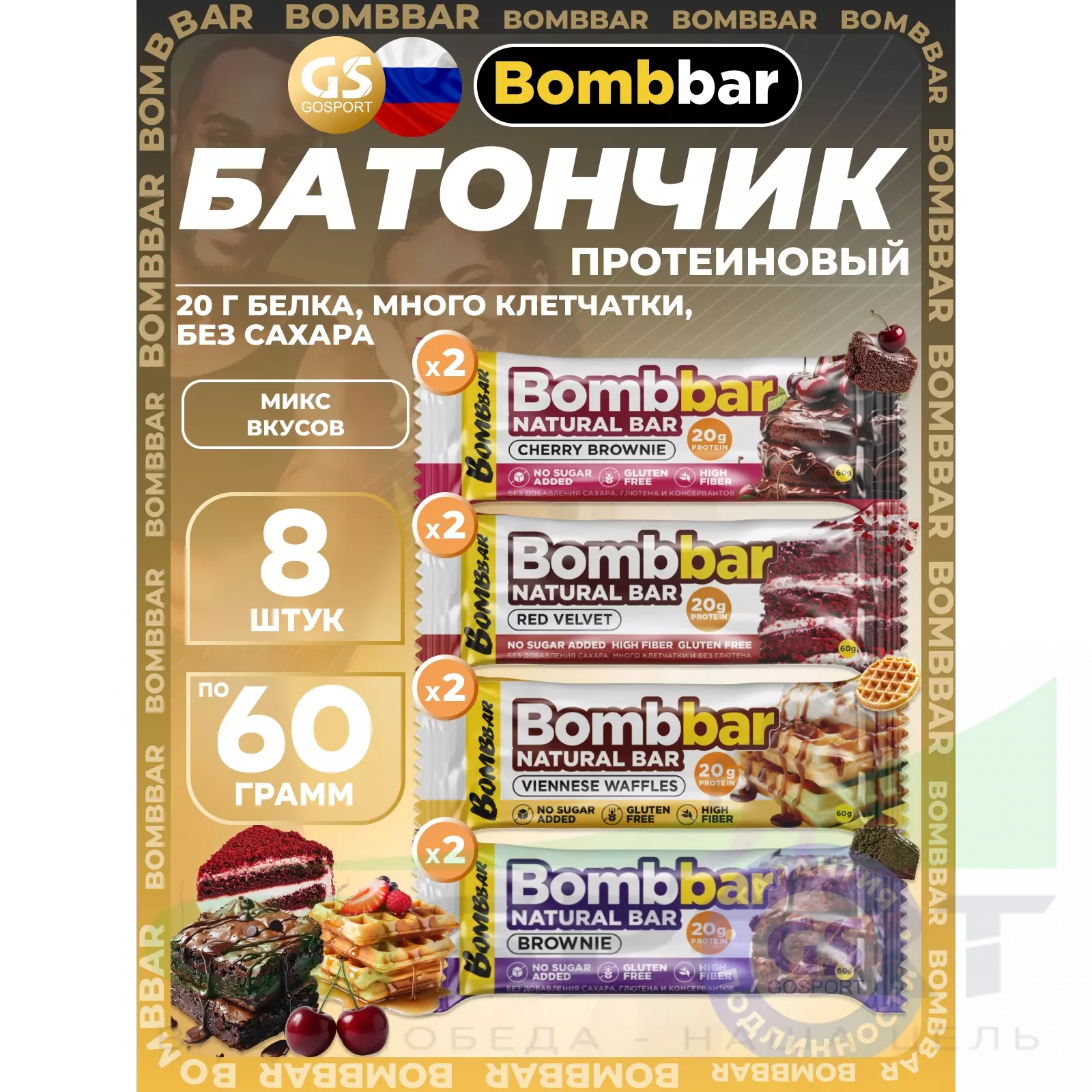 BombBar Protein Bar 8 x 60 г, Микс 4