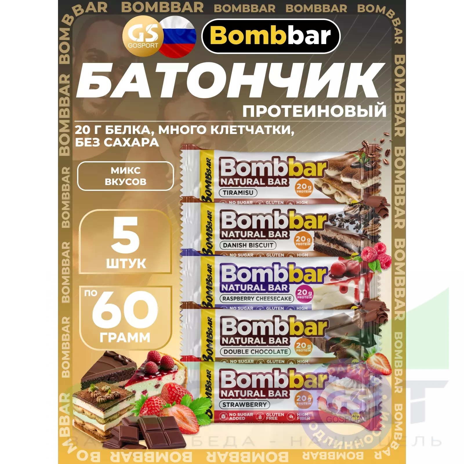 BombBar Protein Bar 5 x 60 г, Микс 5