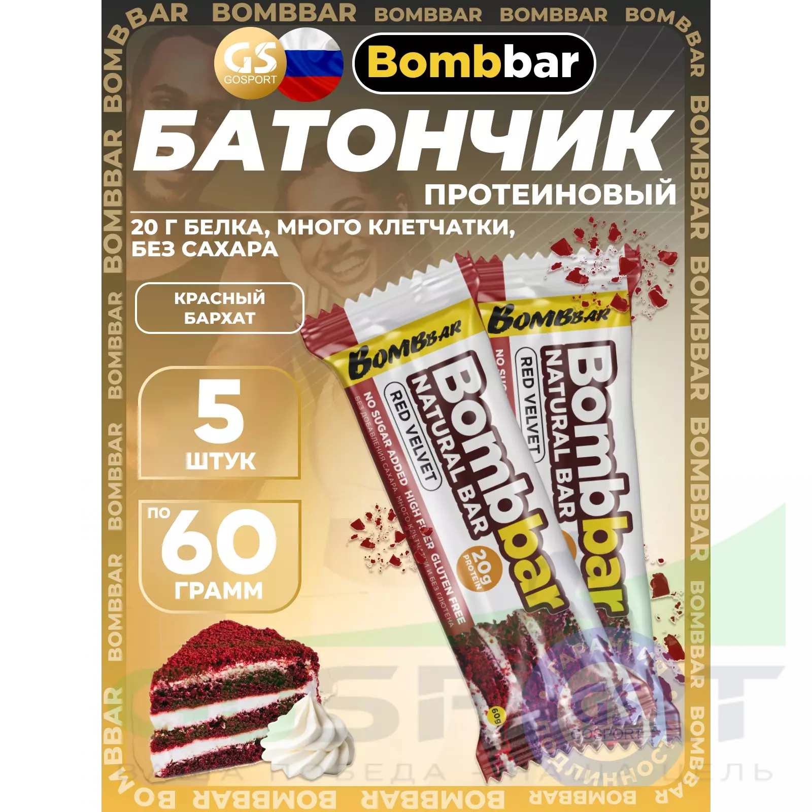 BombBar Protein Bar 5 x 60 г, Красный бархат — Полезный перекус и поддержка мышц