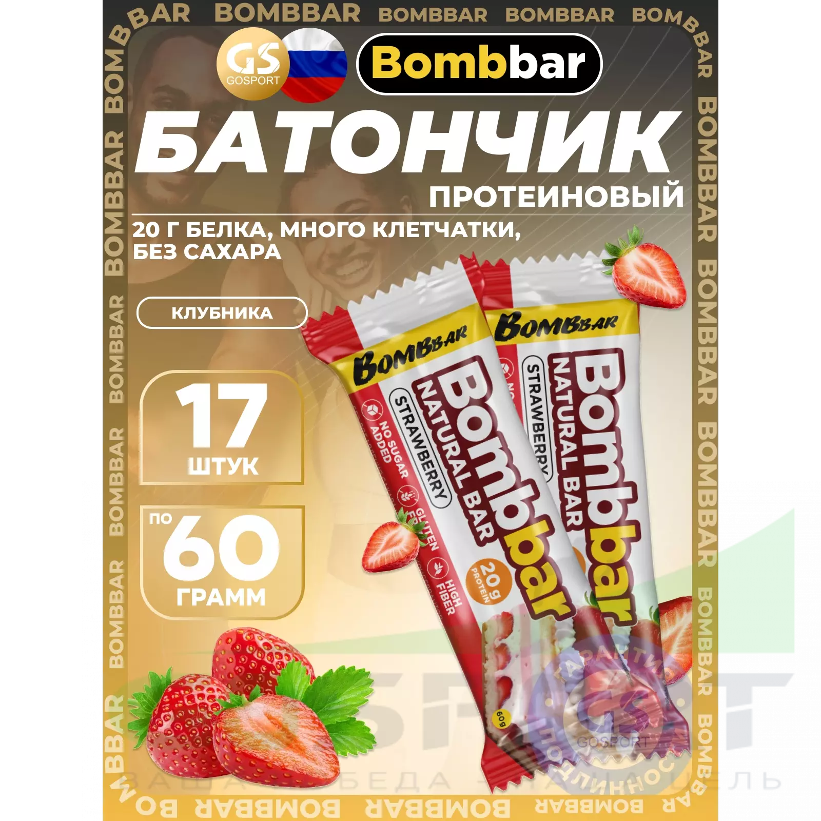 BombBar Protein Bar 17 x 60 г, Клубника — Полезный перекус и поддержка мышц