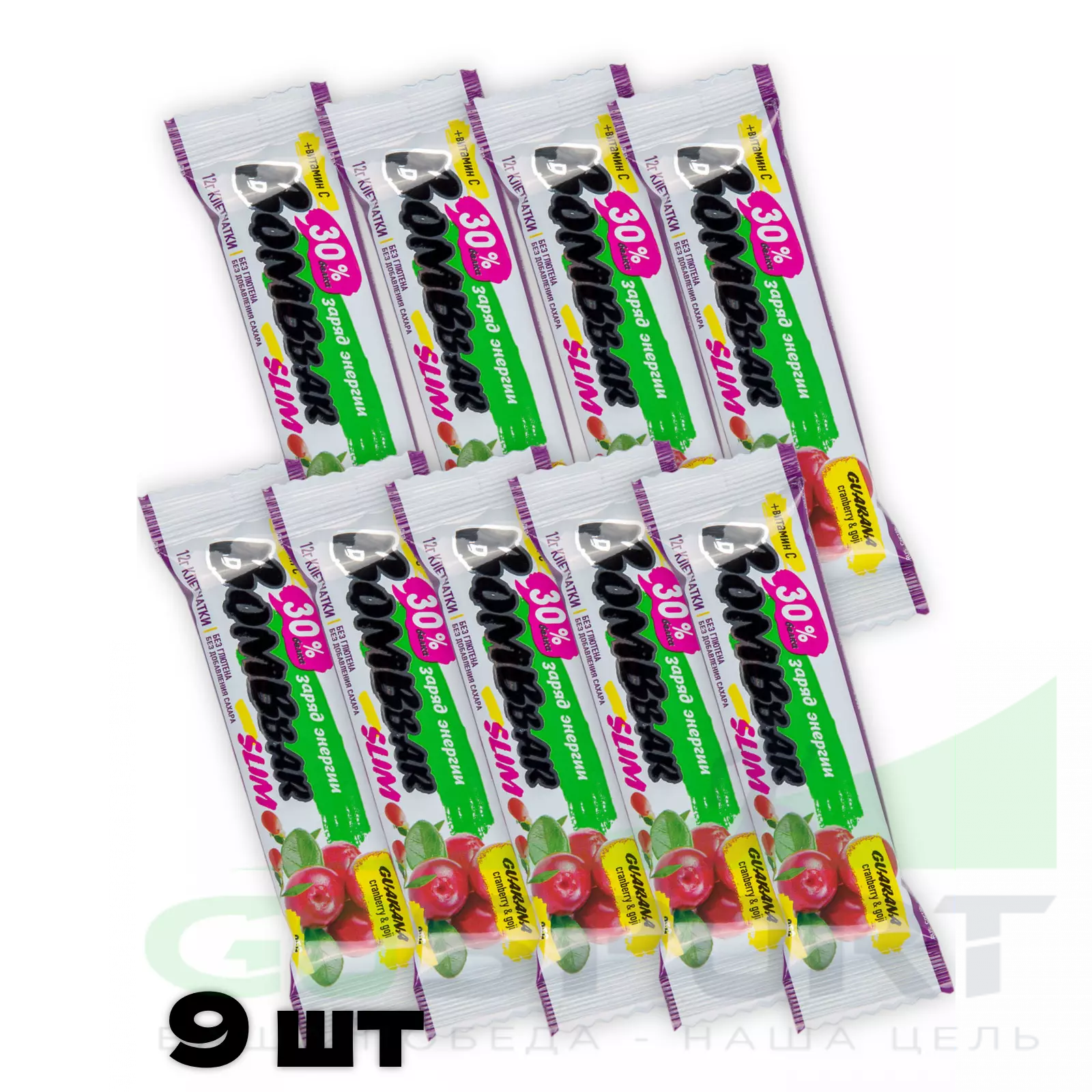 Protein Bar Slim + гуарана 9 х 35 г, Клюква-годжи