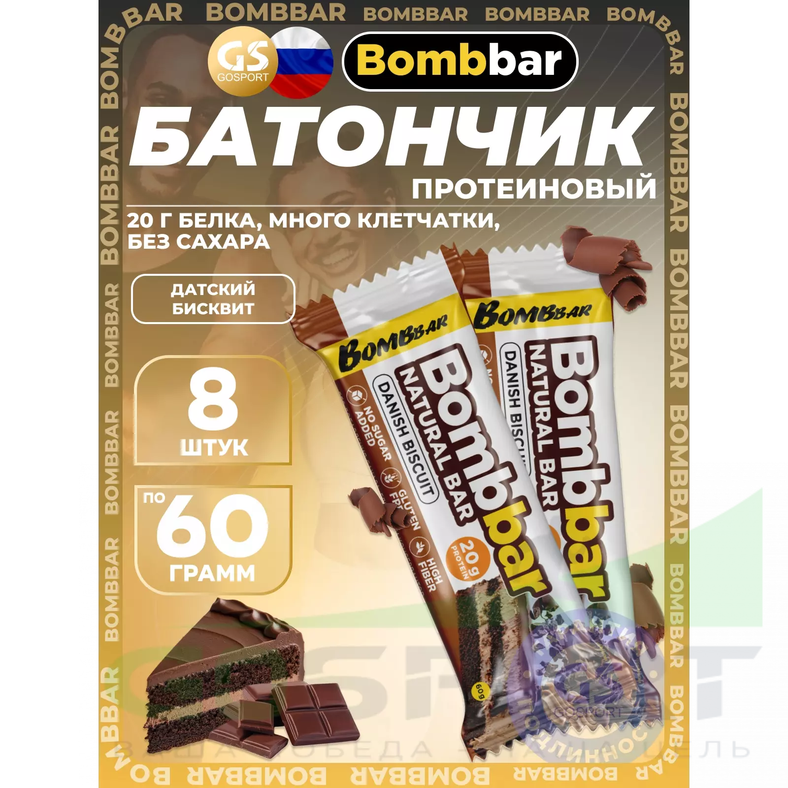 BombBar Protein Bar 8 x 60 г, Датский бисквит — Полезный перекус и поддержка мышц